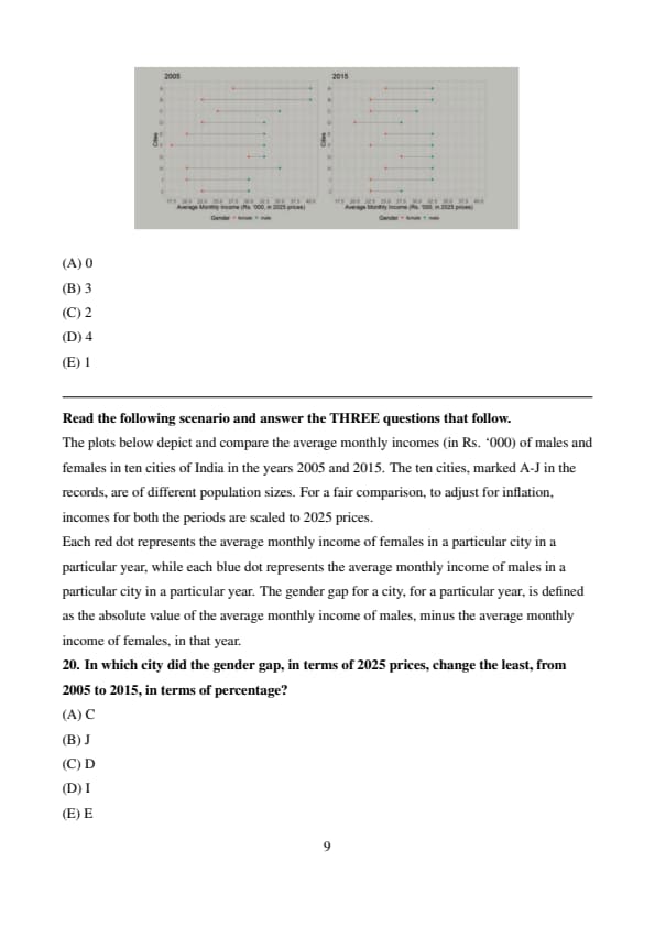 females in ten cities of India in the years 2005 and 2015. The ten cities, marked A-J in the