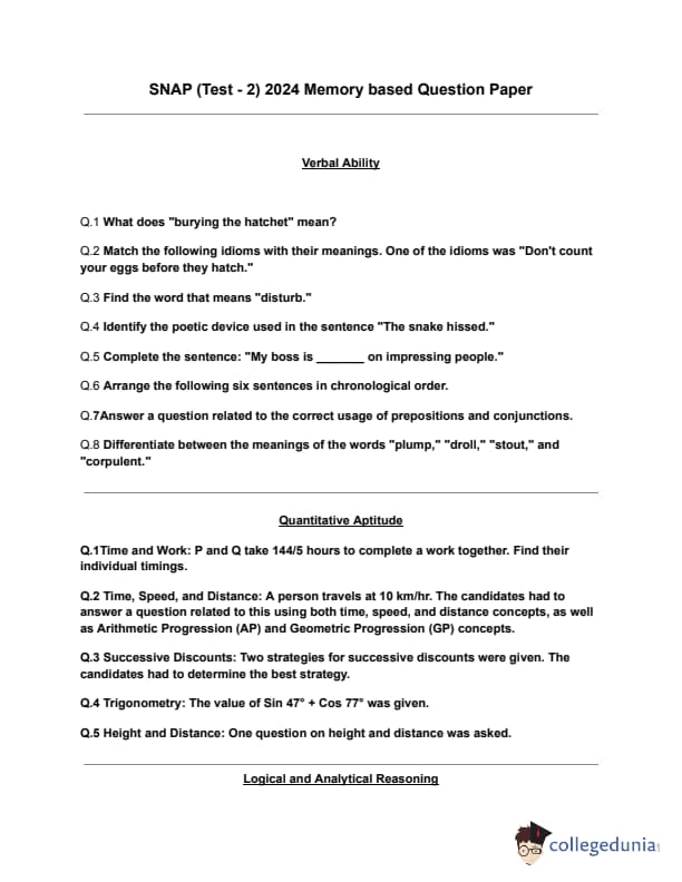 | SNAP 2024 Test 2 Question Paper with Answer Key | Check Solutions |