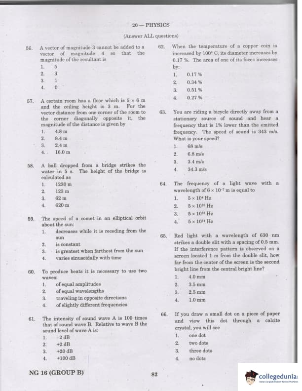TANCET 2016 Physics Question paper with answer key pdf conducted on June 12, 2016 is available for download. The exam was successfully organized by ANNA University. The question paper comprised a total of 60 questions.