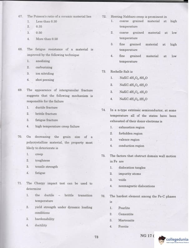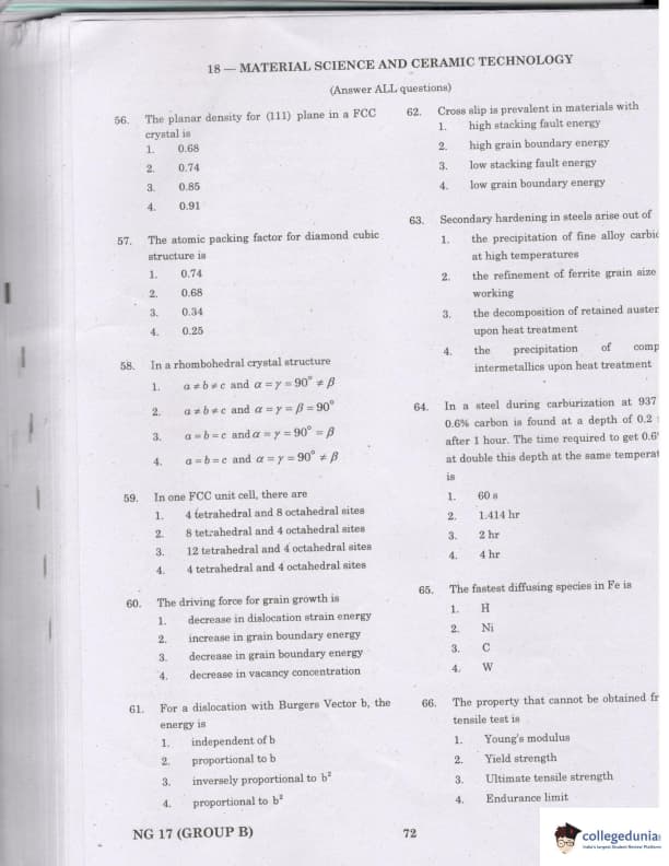 TANCET 2017 Material Science & Ceramic Technology Question Paper with Answer Key PDFs
