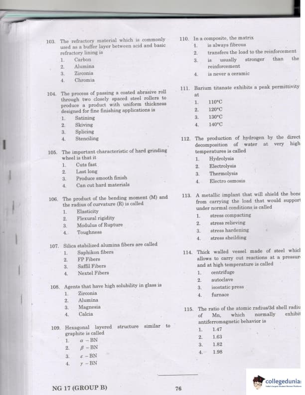 | TANCET 2017 Material Science & Ceramic Technology Question Paper PDF | TANCET 2017 Material Science & Ceramic Technology Answer Key PDF |