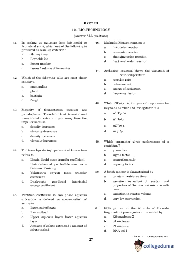 | TANCET Biotechnology Question Paper With Answer Key | Check Solution |