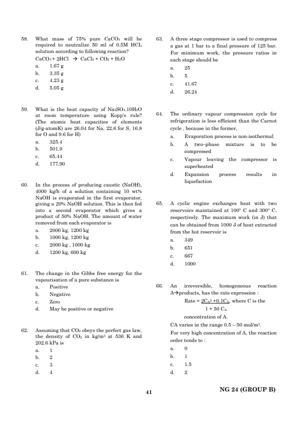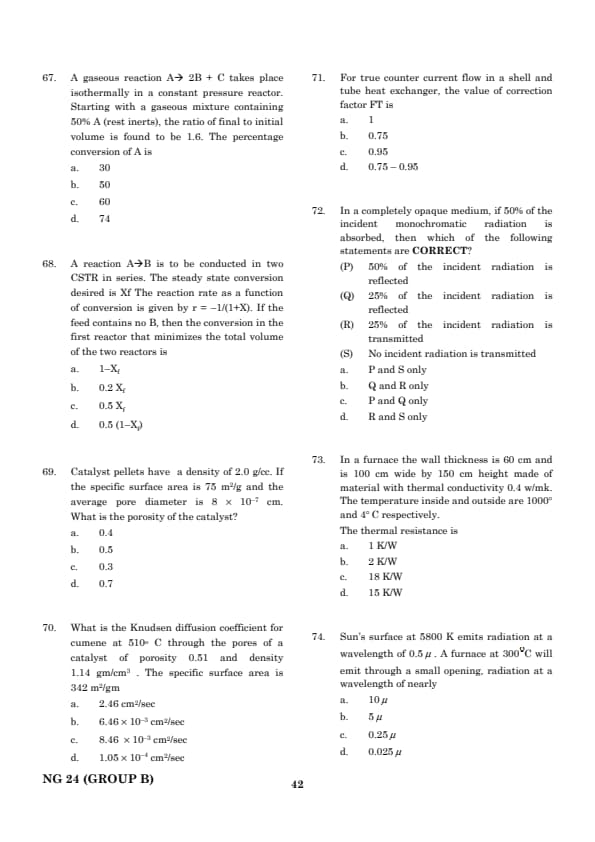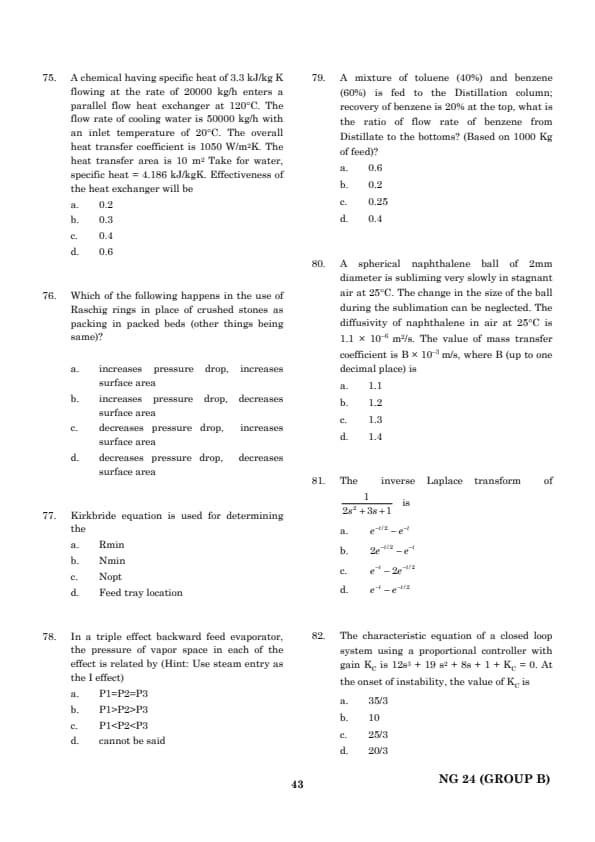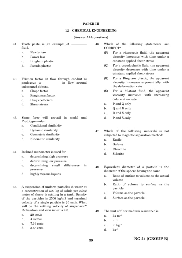 | TANCET Chemical Engineering Question Paper With Answer Key | Check Solution |