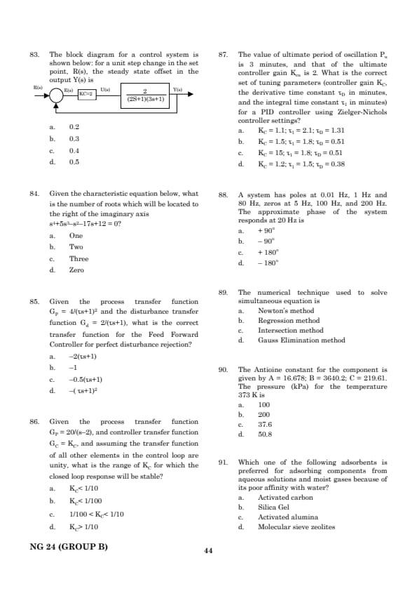 Thus, the closest match is option b.. Quick Tip: Ziegler-Nichols tuning provides initial estimates for controller gains based on the ultimate gain and period of oscillation.