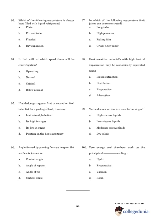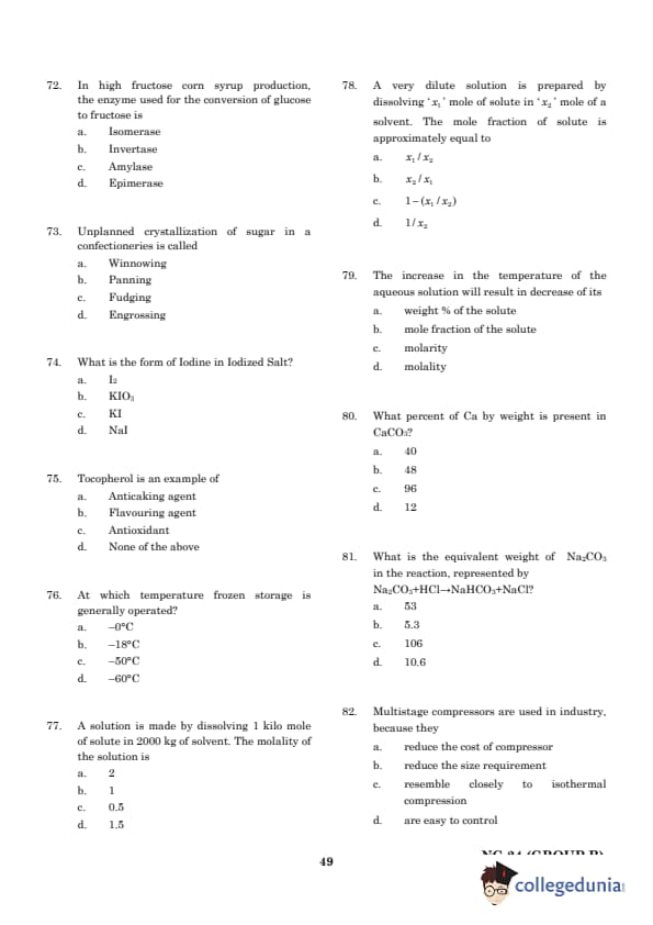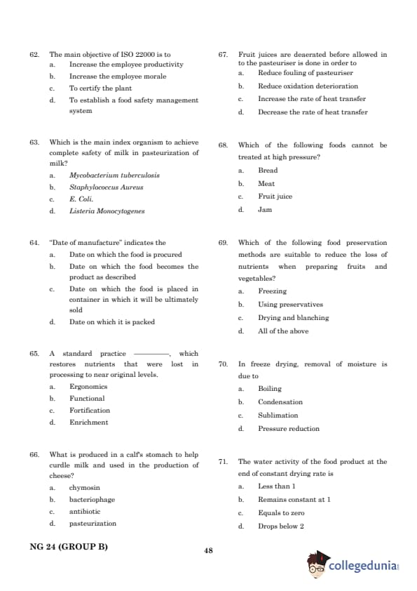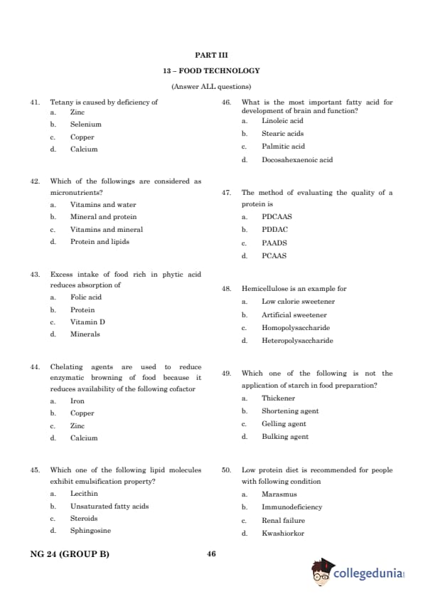 | TANCET Food Technology Question Paper With Answer Key | Check Solution |