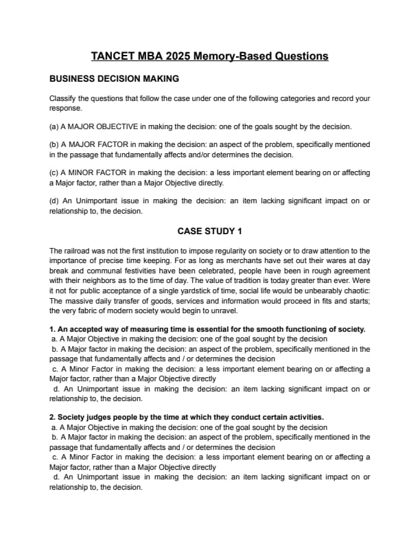| TANCET 2025 MBA Question Paper with Answer Key PDF | Check Solution |