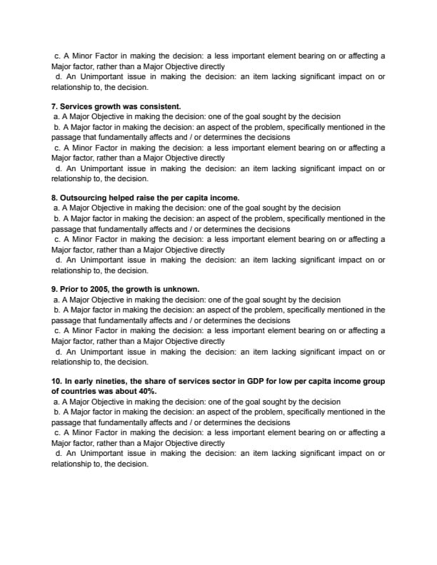 c. A Minor Factor in making the decision: a less important element bearing on or affecting a Major factor, rather than a Major Objective directly