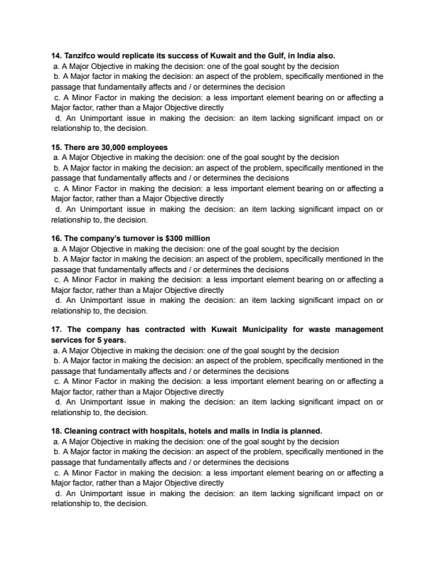 a. A Major Objective in making the decision: one of the goal sought by the decision