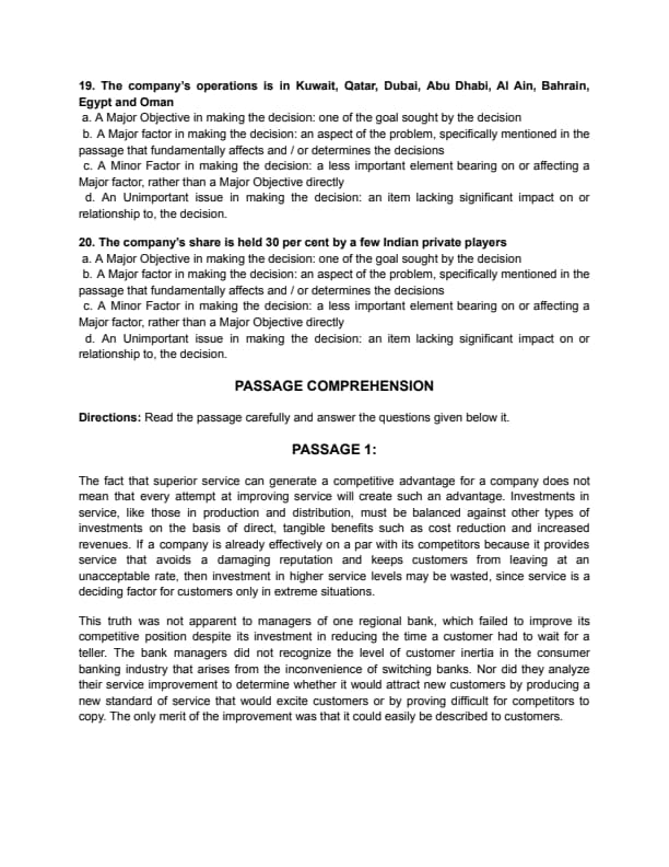 c. A Minor Factor in making the decision: a less important element bearing on or affecting a Major factor, rather than a Major Objective directly.