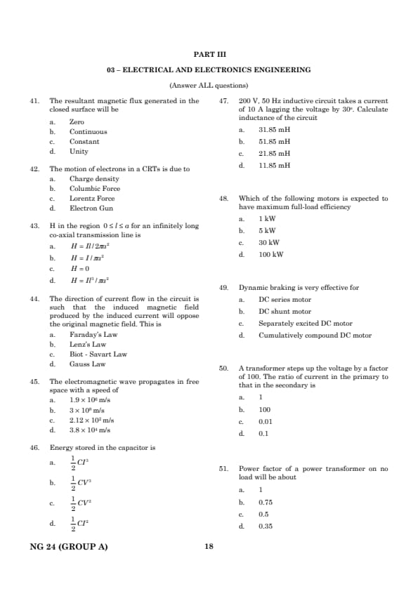 | TANCET Electrical Engineering Question Paper With Answer Key | Check Solution |
