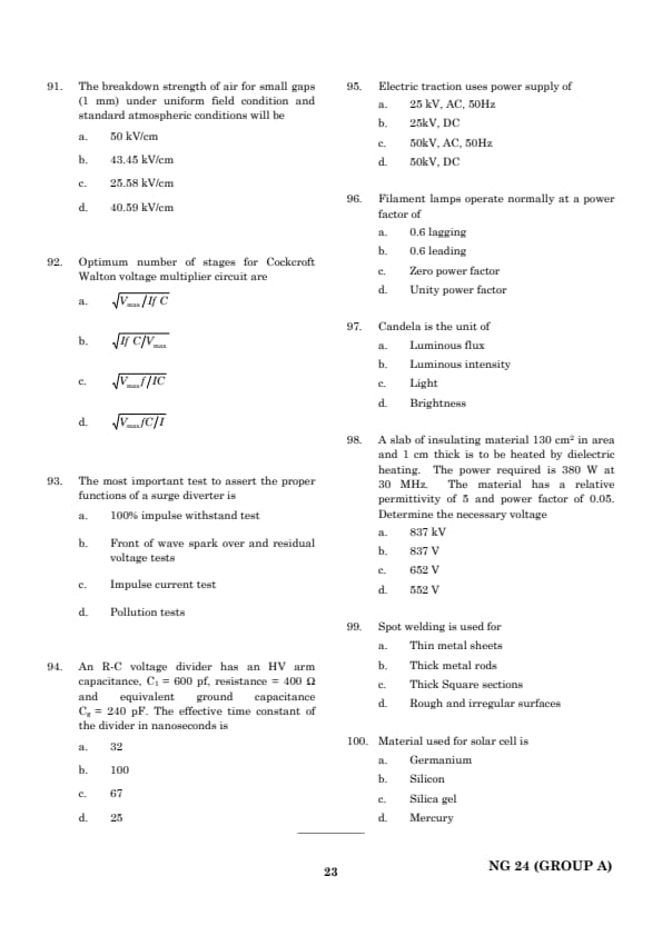 - (D) Incorrect: Ionization is a part of the process but does not fully define the time lag. Quick Tip: The time lag for breakdown is the delay between voltage application and the actual breakdown, influenced by statistical and formative factors.