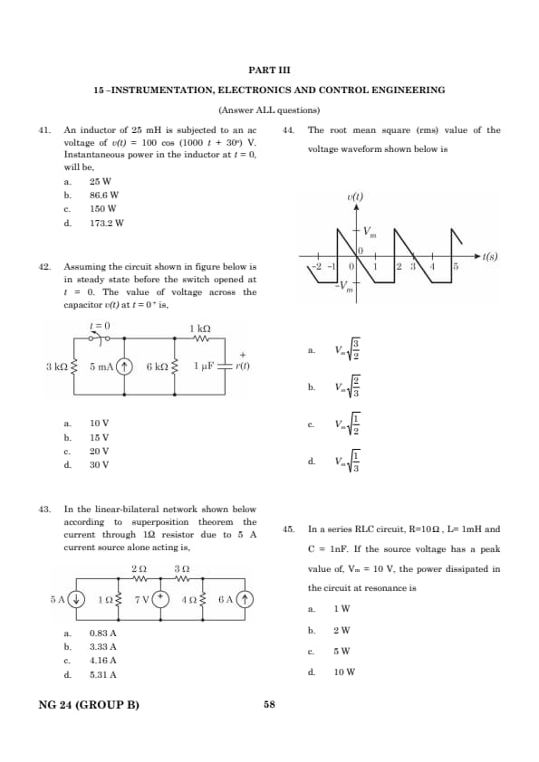 | TANCET Instrumentation, electronics and control engineering Question Paper With Answer Key | Check Solution |