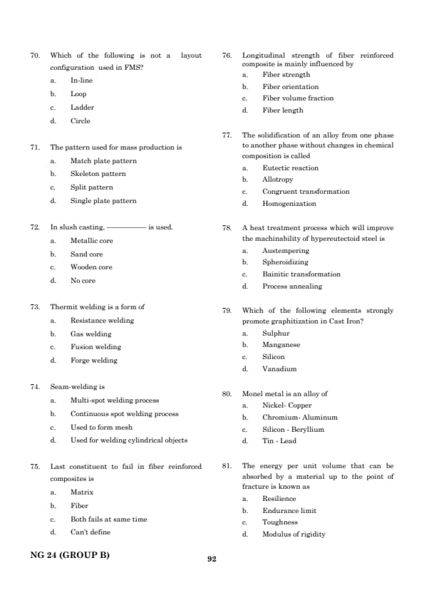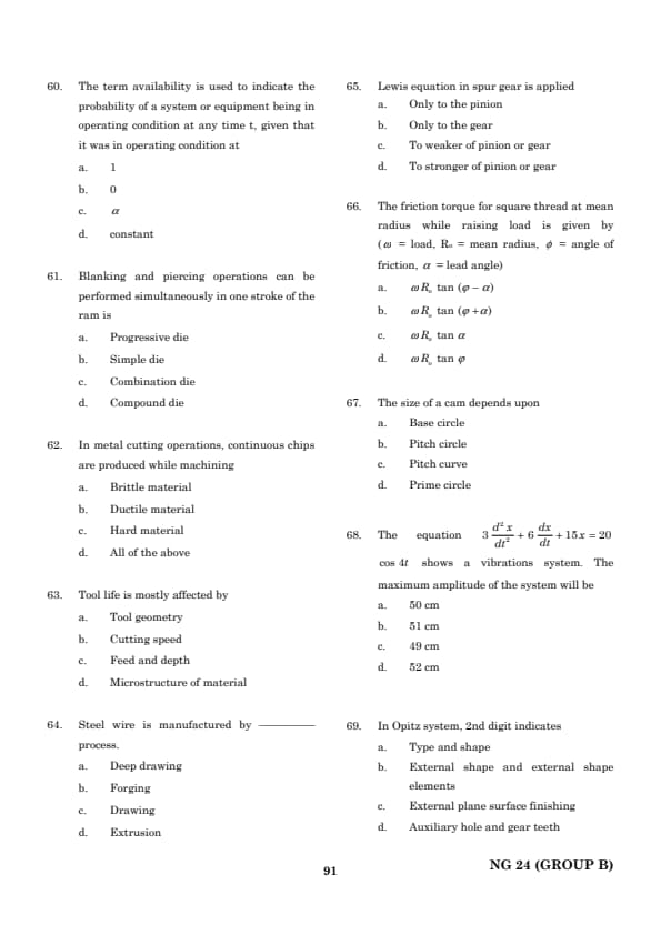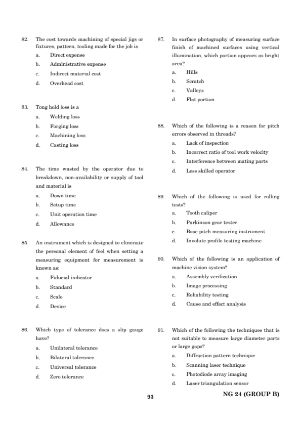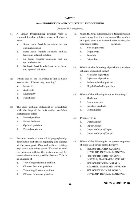 | TANCET Production And Industrial Engineering Question Paper With Answer Key | Check Solution |