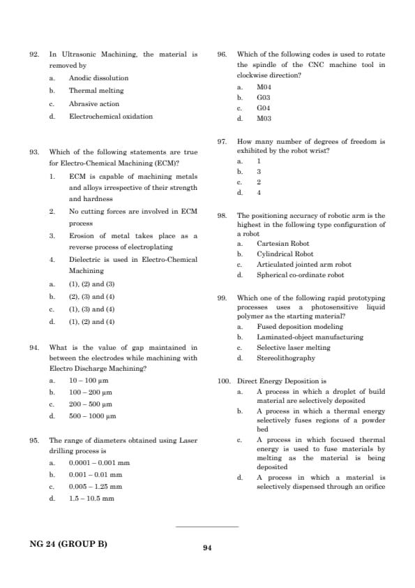 Option (A) describes a different technique, droplet deposition, used in other 3D printing processes. Option (B) refers to selective laser sintering (SLS), while option (D) does not correctly describe DED. Quick Tip: In Direct Energy Deposition, focused thermal energy plays a crucial role in fusing materials during deposition, making it ideal for both additive manufacturing and part repair.