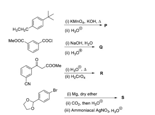 In the following reactions, P, Q, R, and S are the major products. The correct statement(s) about P, Q, R, and S is(are)