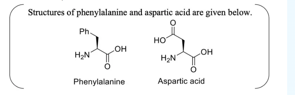 Aspartame, an artificial sweetener, is a dipeptide aspartyl phenylalanine methyl ester. The structure of aspartame is