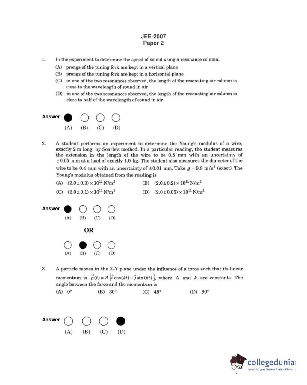 | JEE Advanced 2007 Paper 2 Question Paper | JEE Advanced 2007 Paper 2 Answer Key |