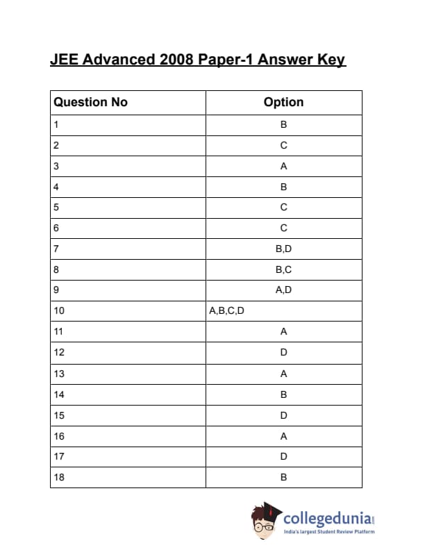 | JEE Advanced 2008 Paper 1 Question Paper | JEE Advanced 2008 Paper 1 Answer Key |