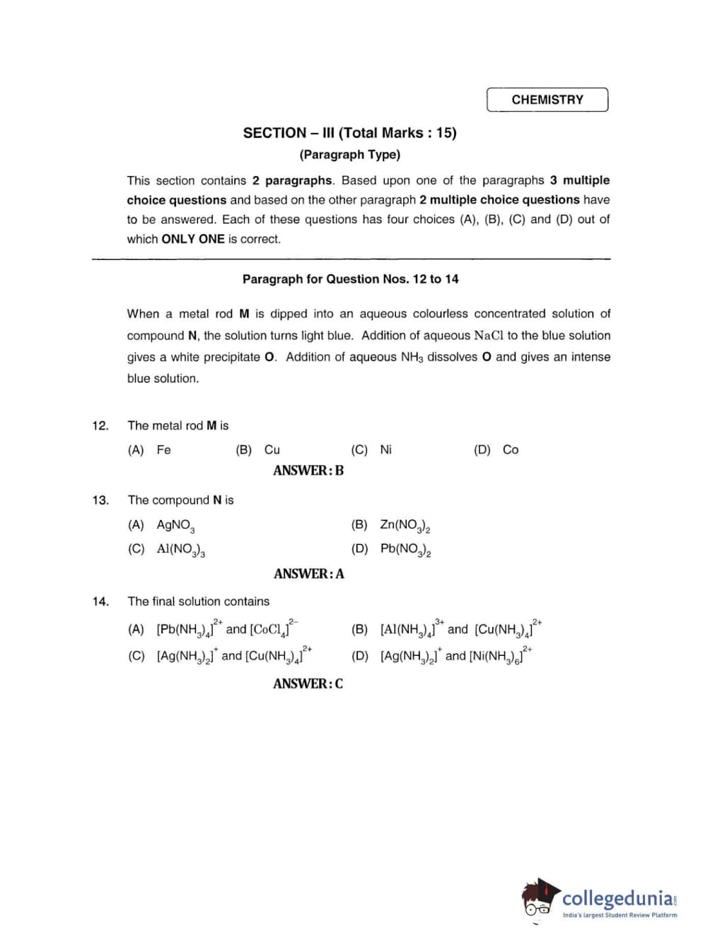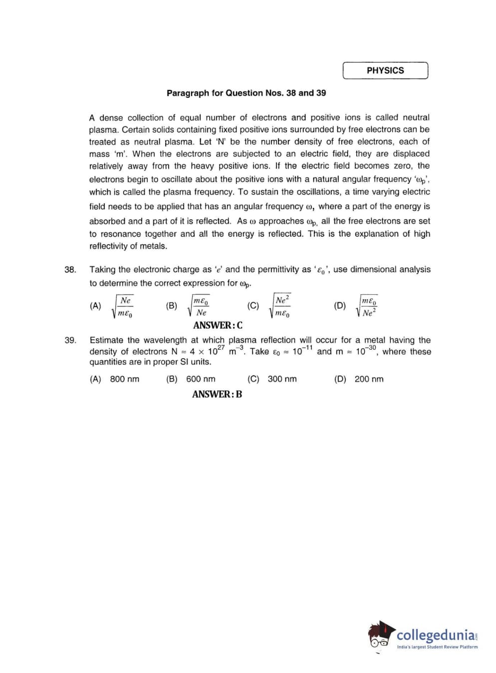 JEE Advanced 2011 Paper 1 Question Paper with Answer Key PDF in English