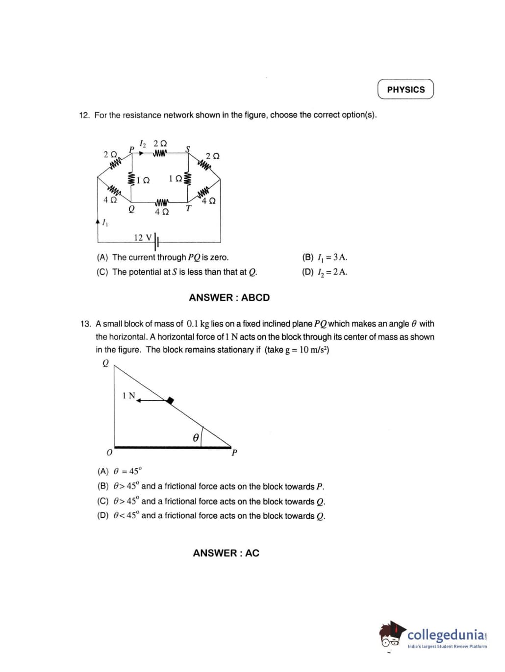 | JEE Advanced 2012 Paper 1 Question Paper | JEE Advanced 2012 Paper 1 Answer Key |