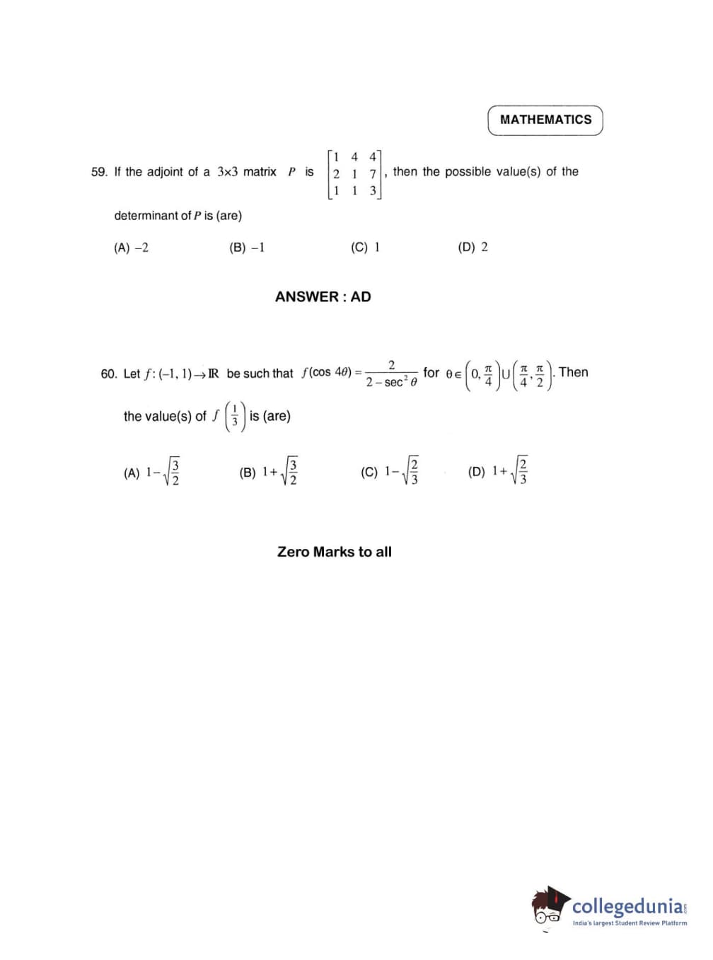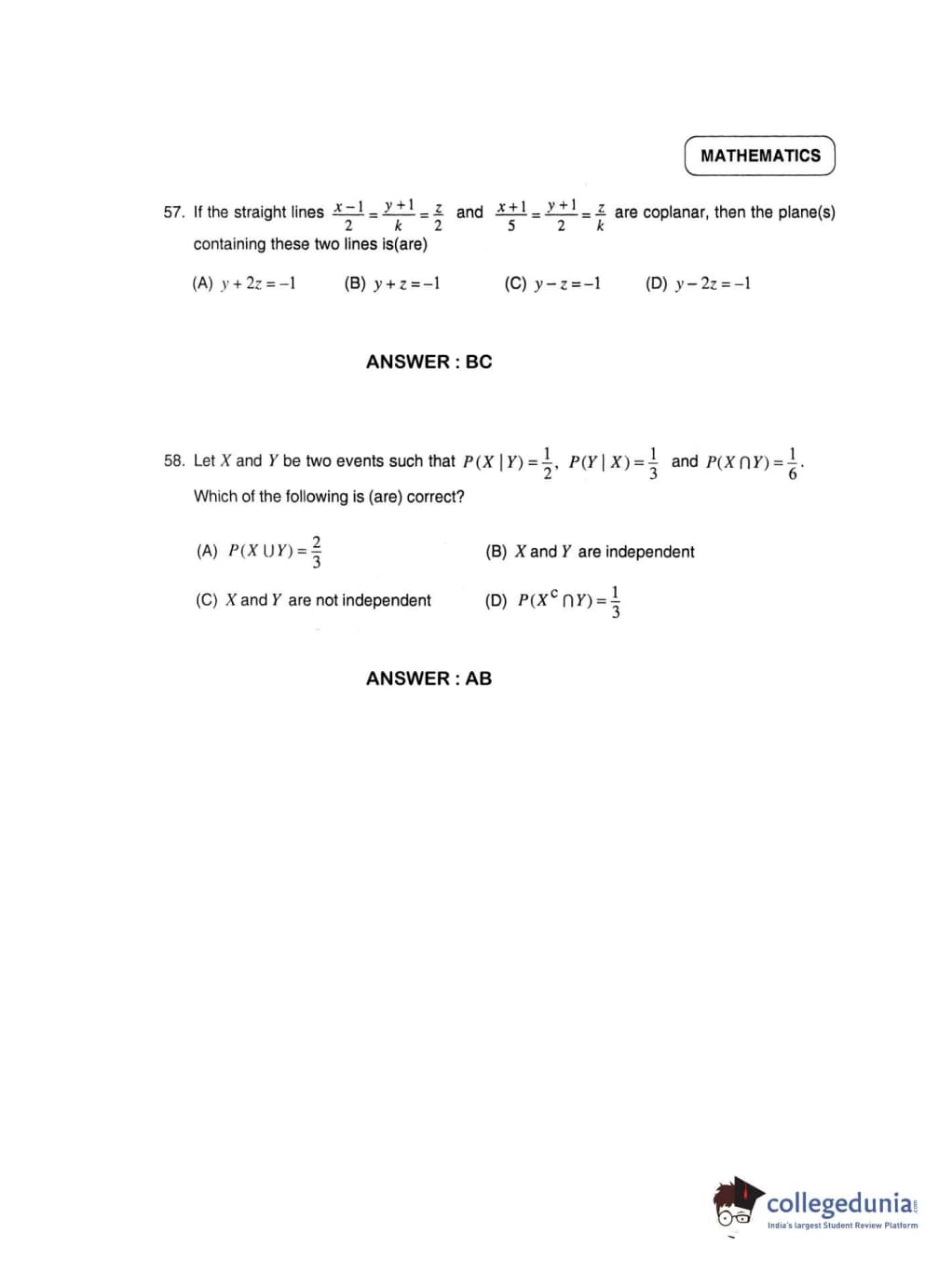 | JEE Advanced 2012 Paper 2 Question Paper | JEE Advanced 2012 Paper 2 Answer Key |