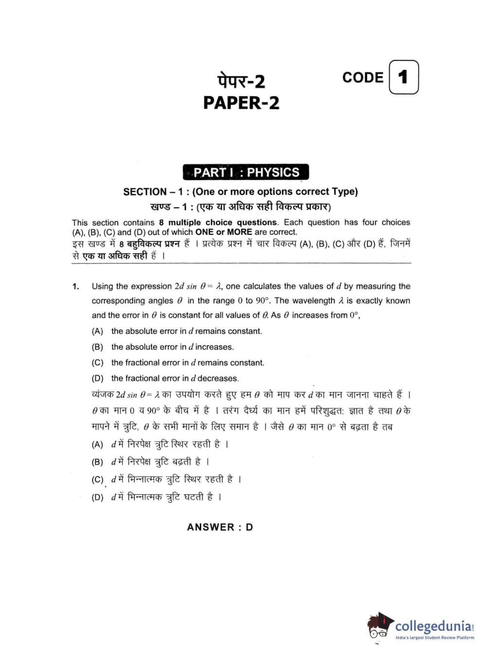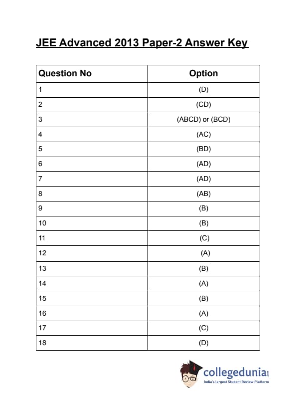 | JEE Advanced 2013 Paper 2 Question Paper | JEE Advanced 2013 Paper 2 Answer Key |