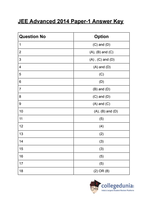 | JEE Advanced 2014 Paper 1 Question Paper | JEE Advanced 2014 Paper 1 Answer Key |