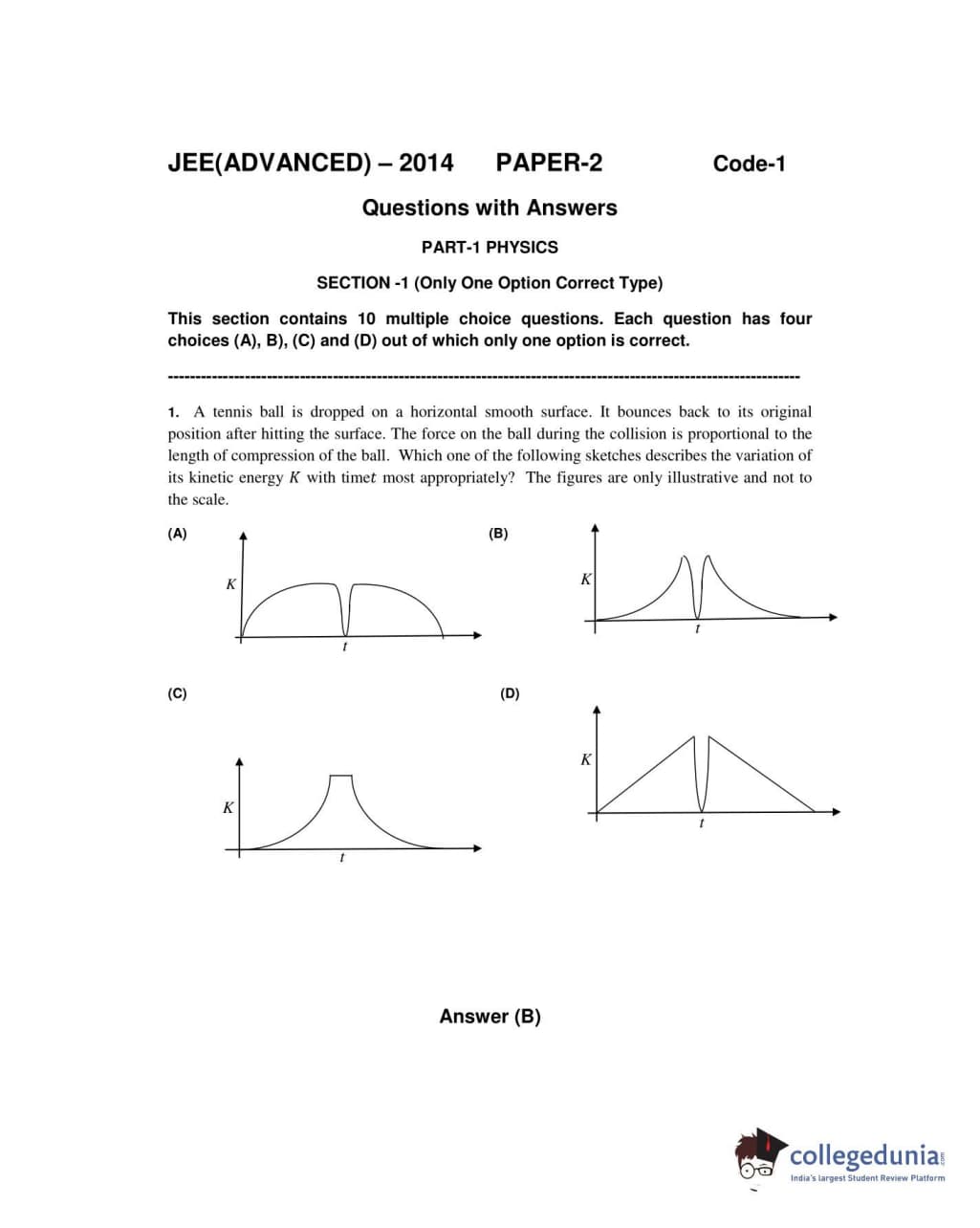 JEE Advanced 2014 Paper 2 Question Paper with Answer Key PDF in English