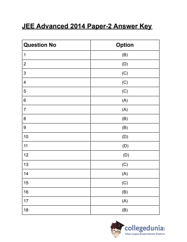 | JEE Advanced 2014 Paper 2 Question Paper | JEE Advanced 2014 Paper 2 Answer Key |