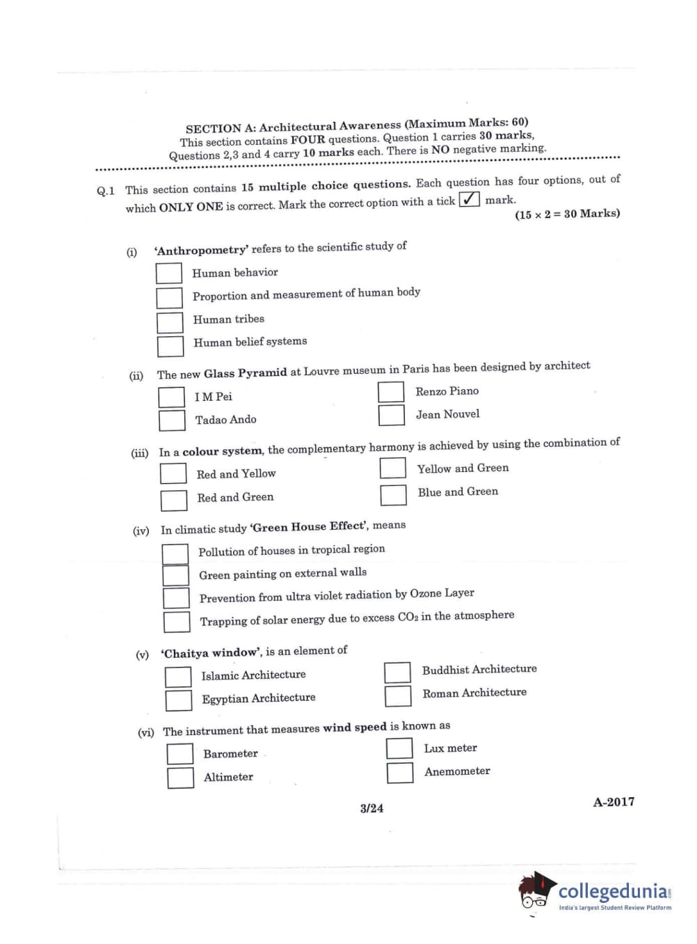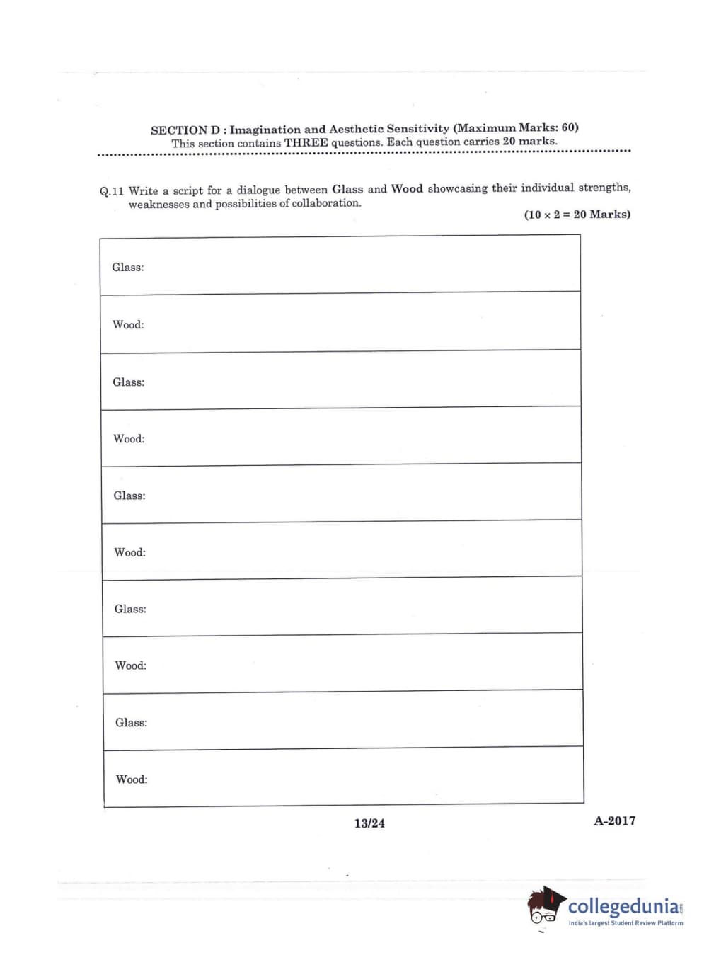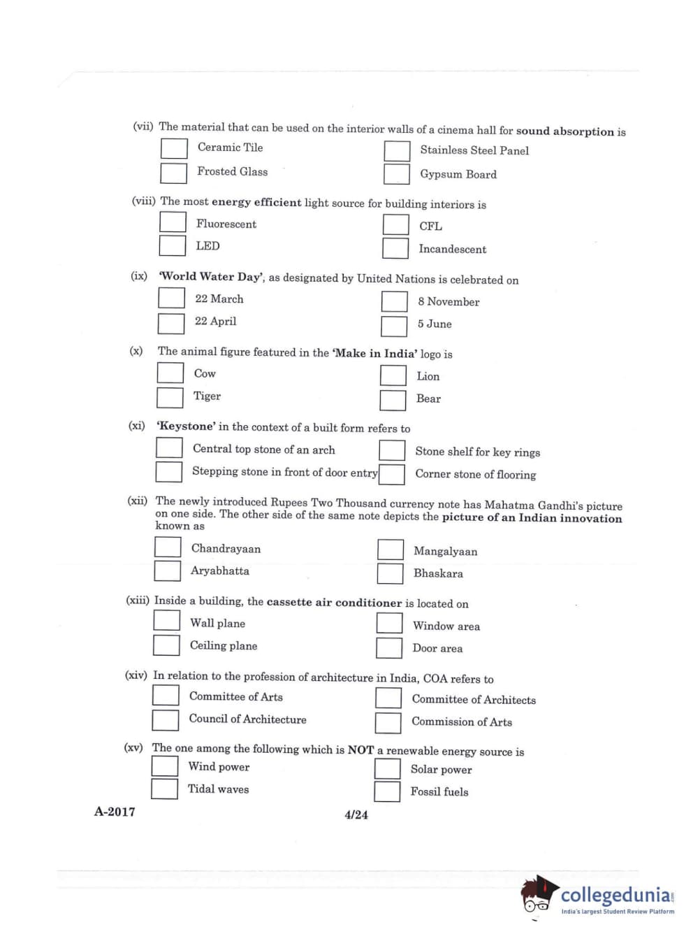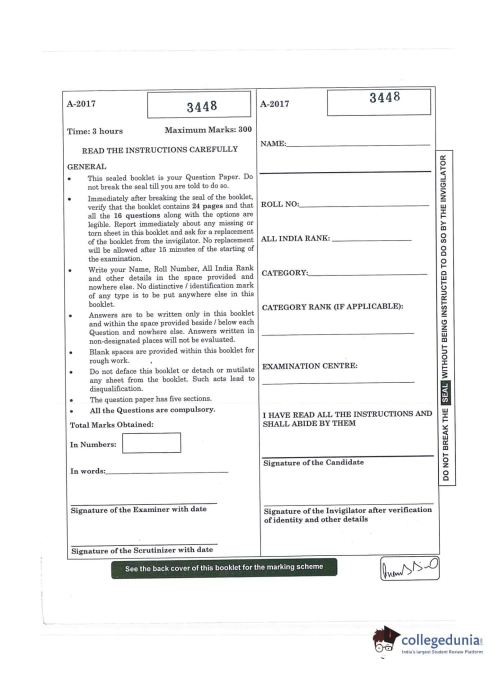 JEE Advanced 2017 AAT Question Paper with Answer Key PDF