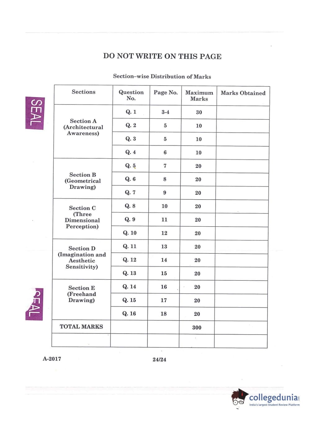 | JEE Advanced 2017 AAT Question Paper | JEE Advanced 2017 AAT Answer Key |