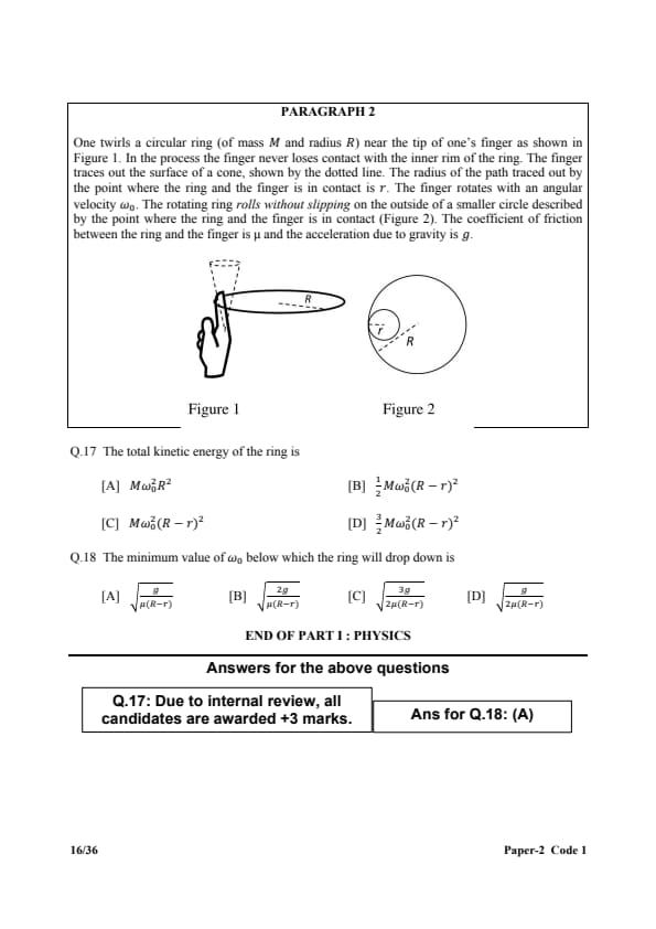 | JEE Advanced 2017 Paper 2 Question Paper | JEE Advanced 2017 Paper 2 Answer Key |