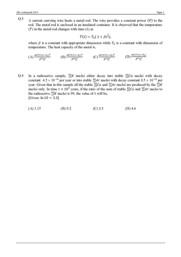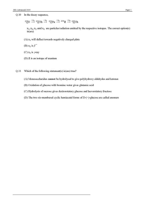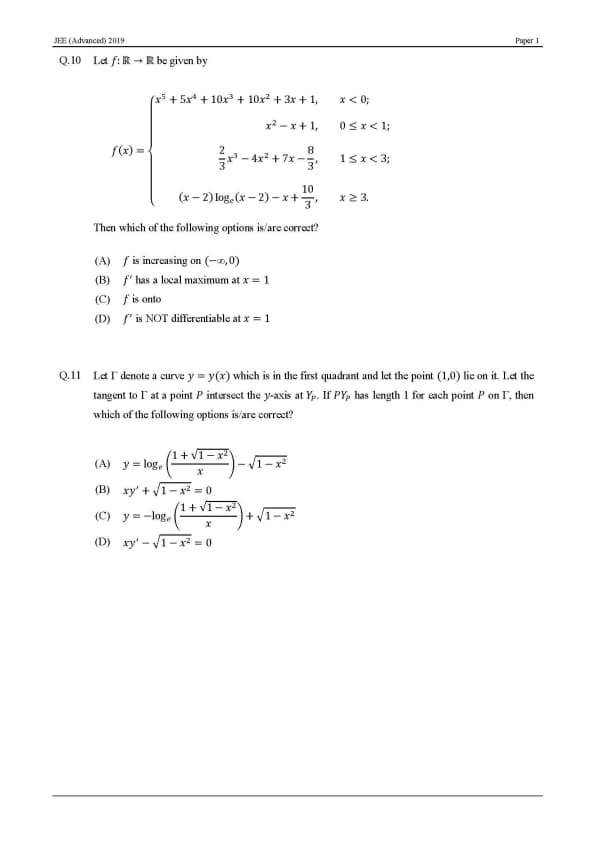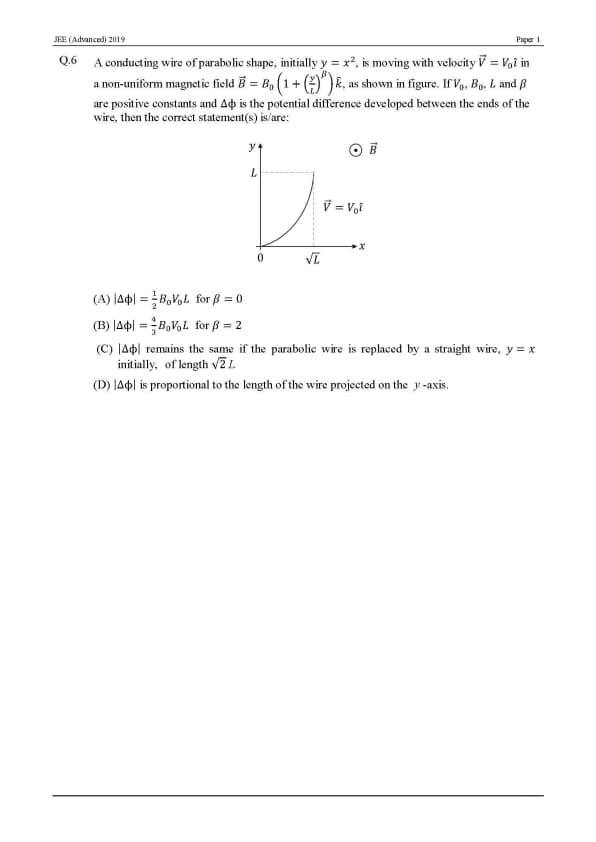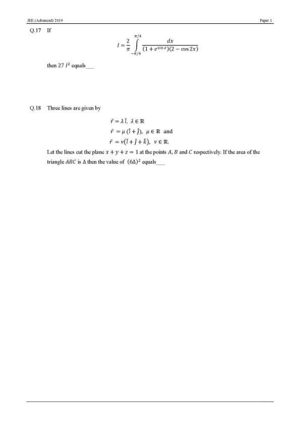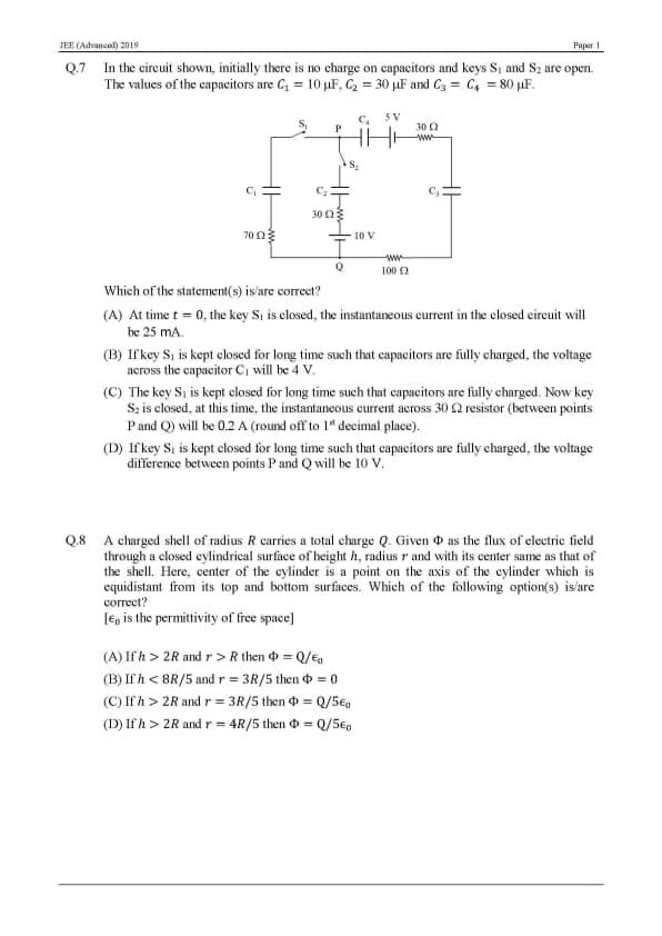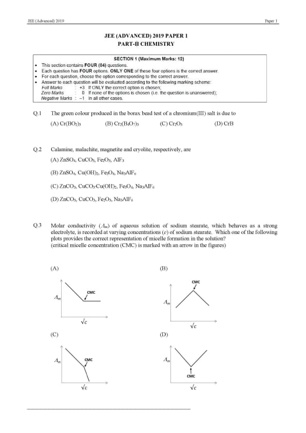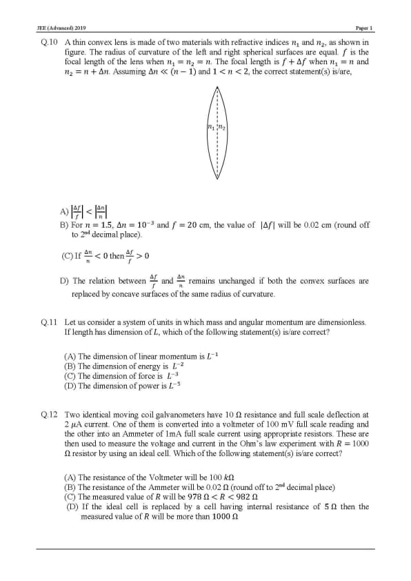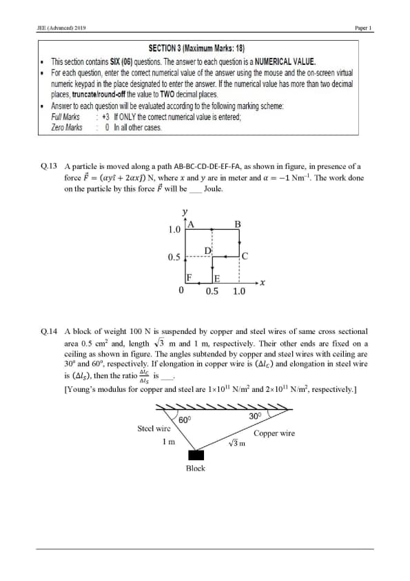 | JEE Advanced 2019 Paper 1 Question Paper | JEE Advanced 2019 Paper 1 Answer Key |