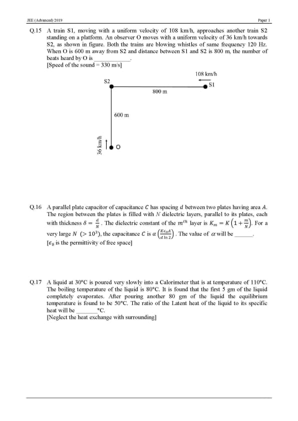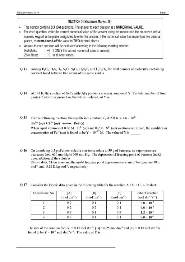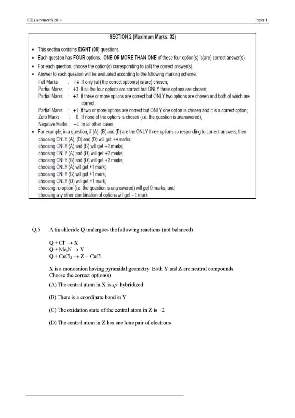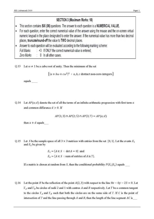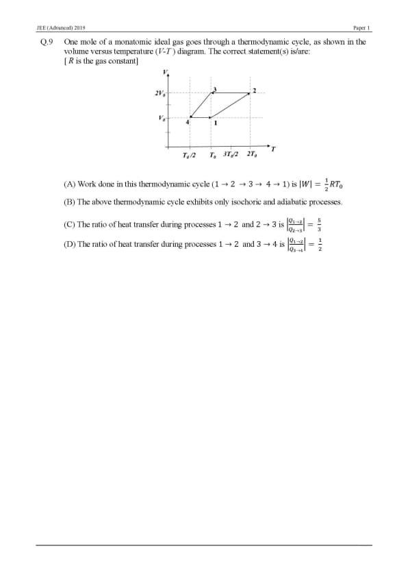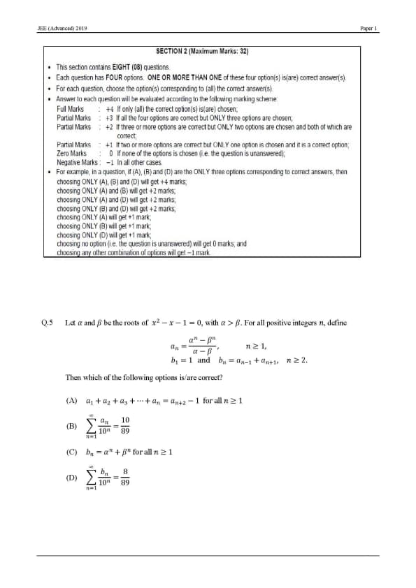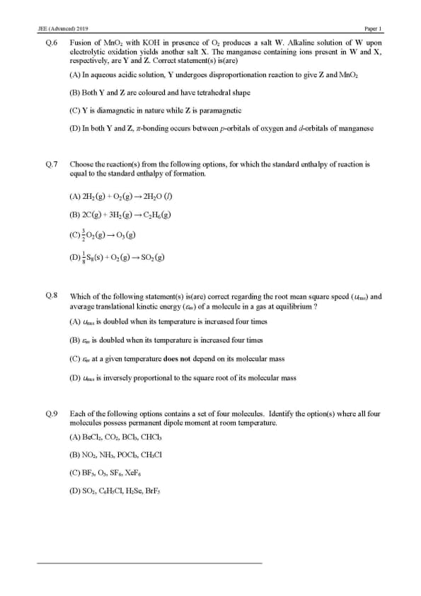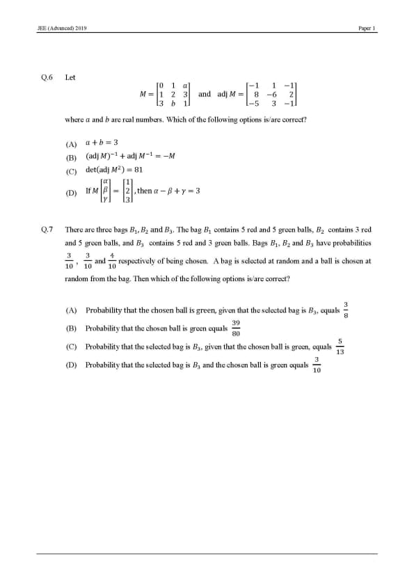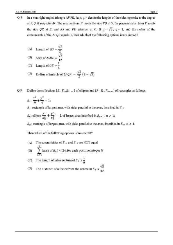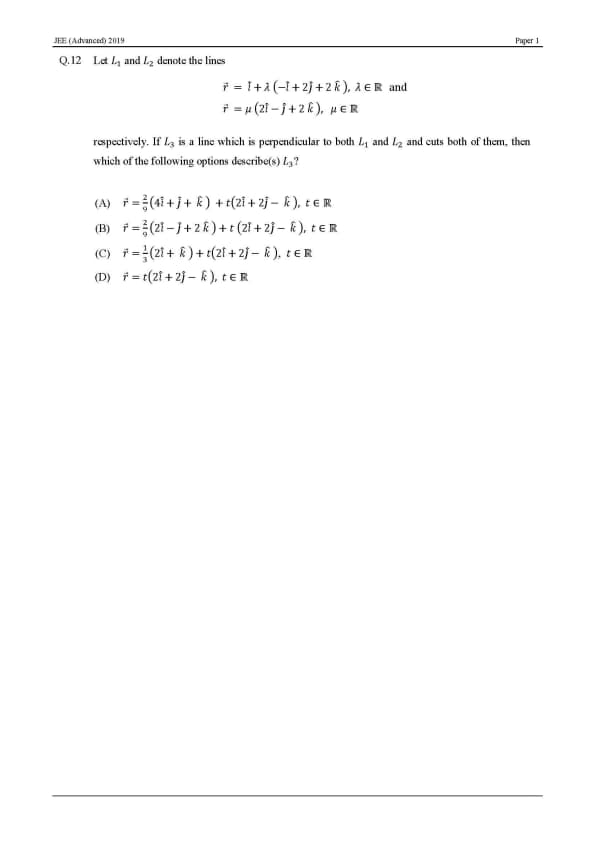| JEE Advanced 2019 Paper 1 Question Paper | JEE Advanced 2019 Paper 1 Answer Key |