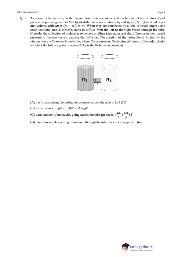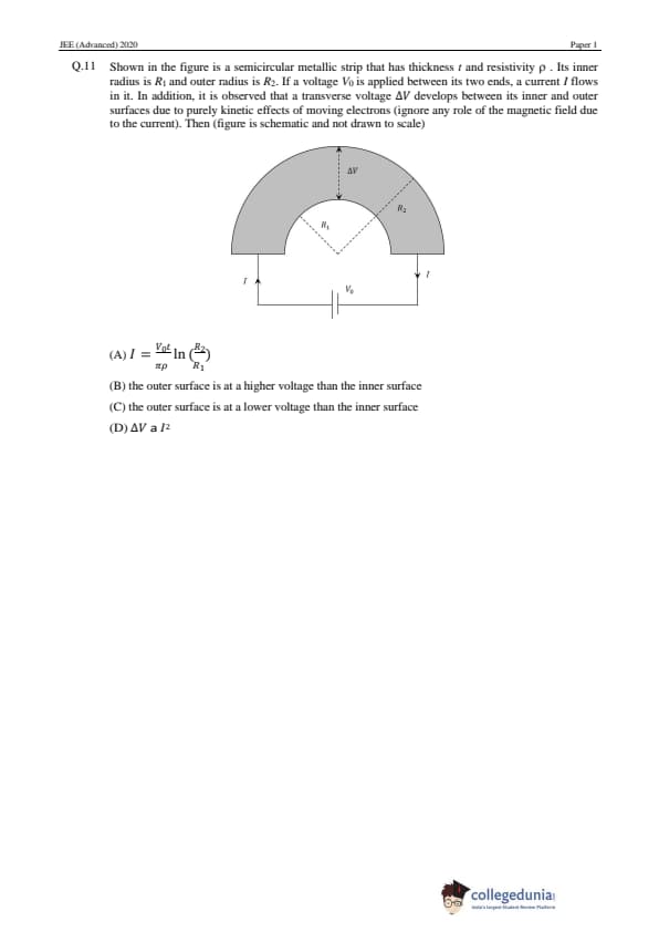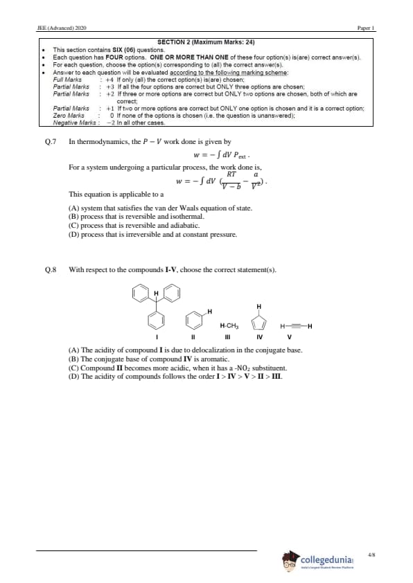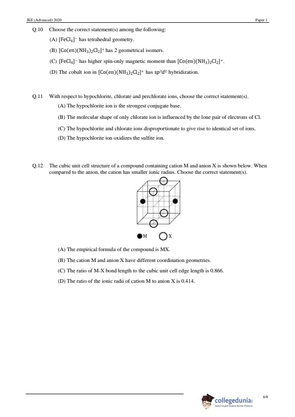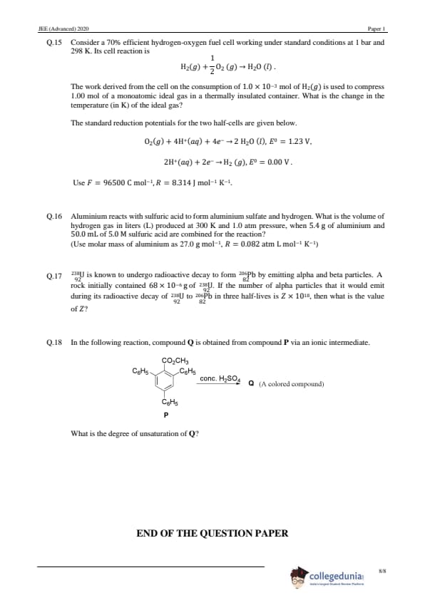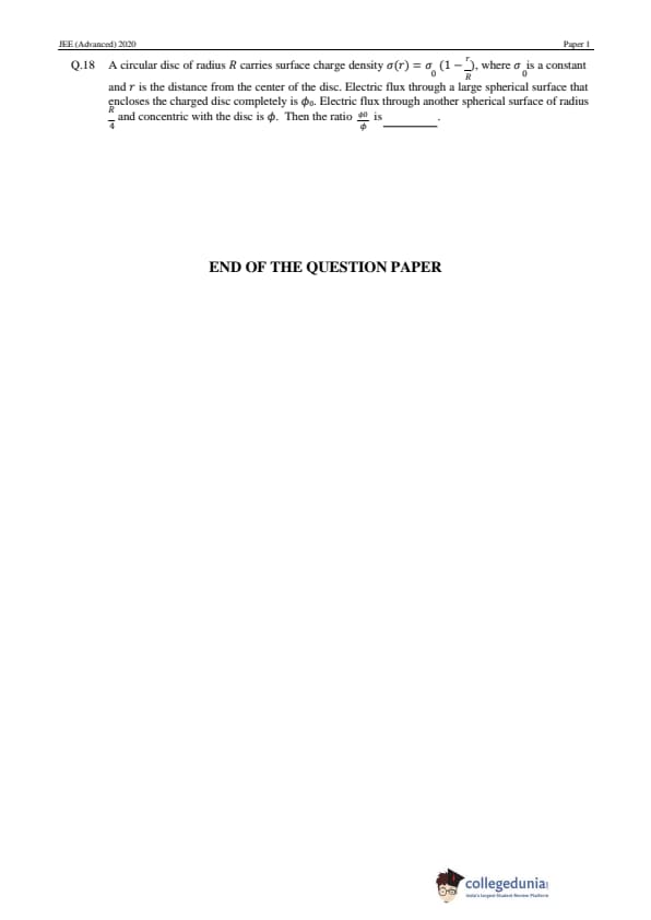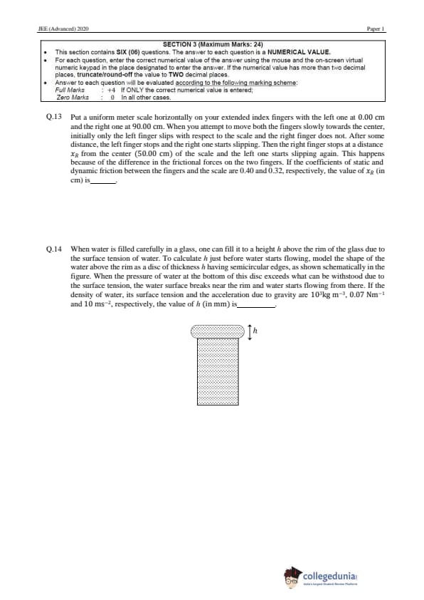 JEE Advanced 2020 Paper 1 Question Paper with Answer Key PDF in English