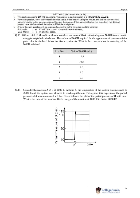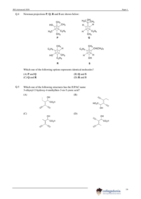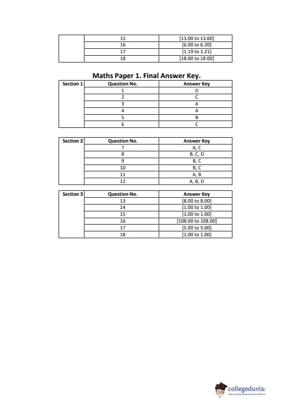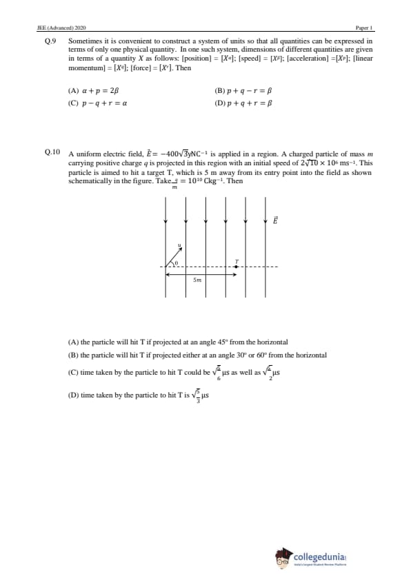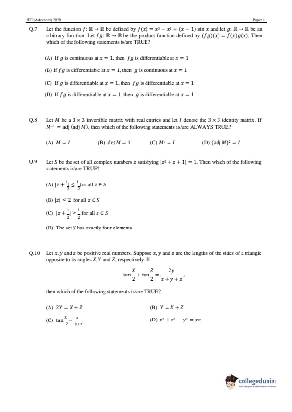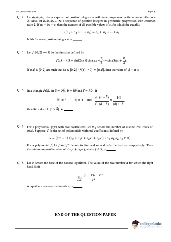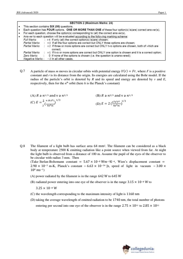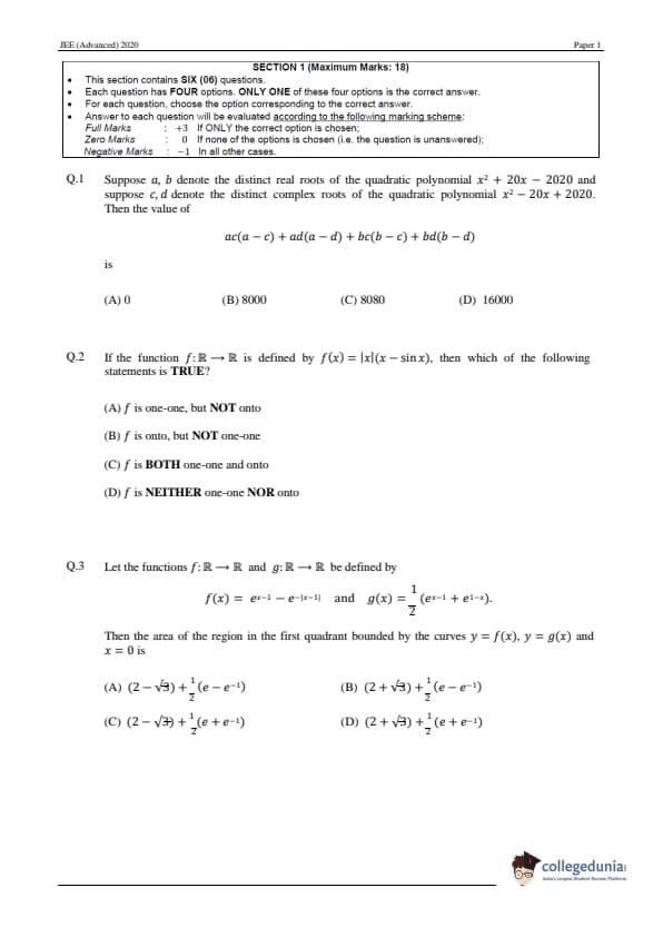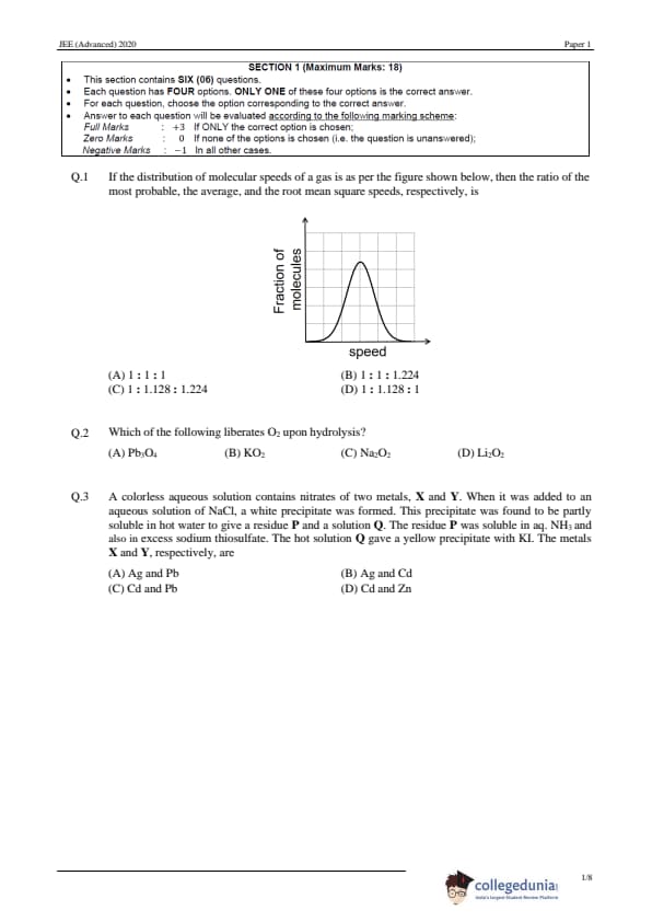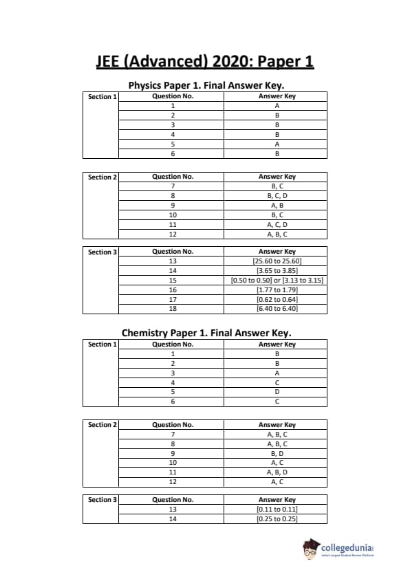 | JEE Advanced 2020 Paper 1 Question Paper | JEE Advanced 2020 Paper 1 Answer Key |