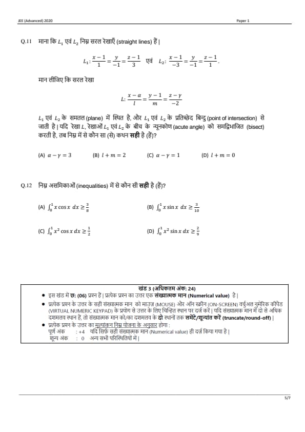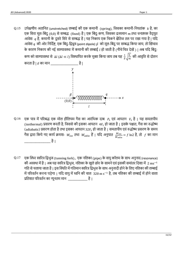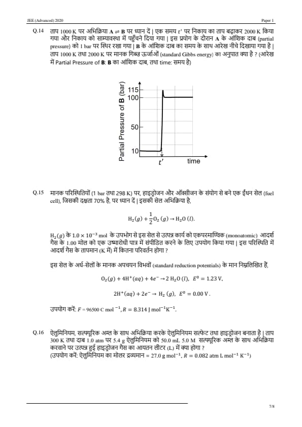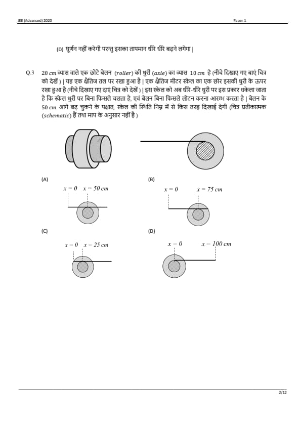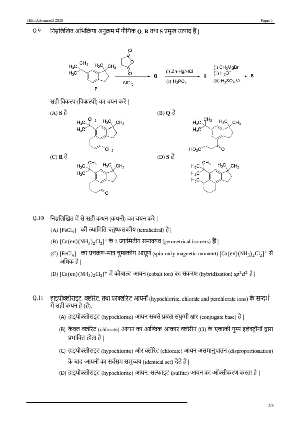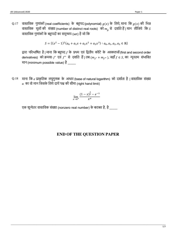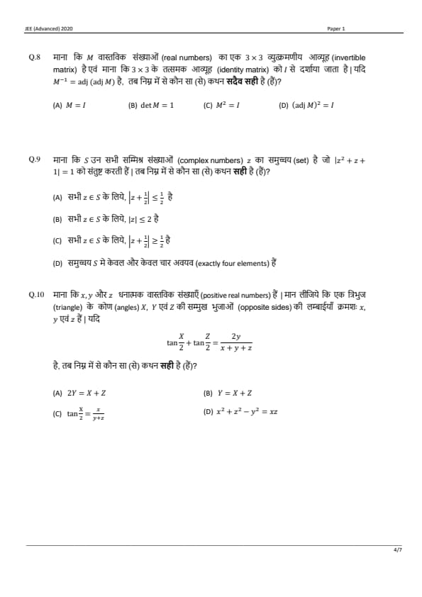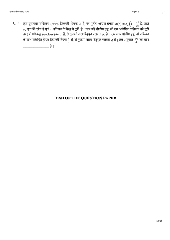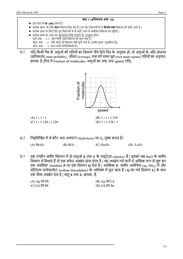 JEE Advanced 2020 Paper 1 Question Paper with Answer Key PDF in Hindi