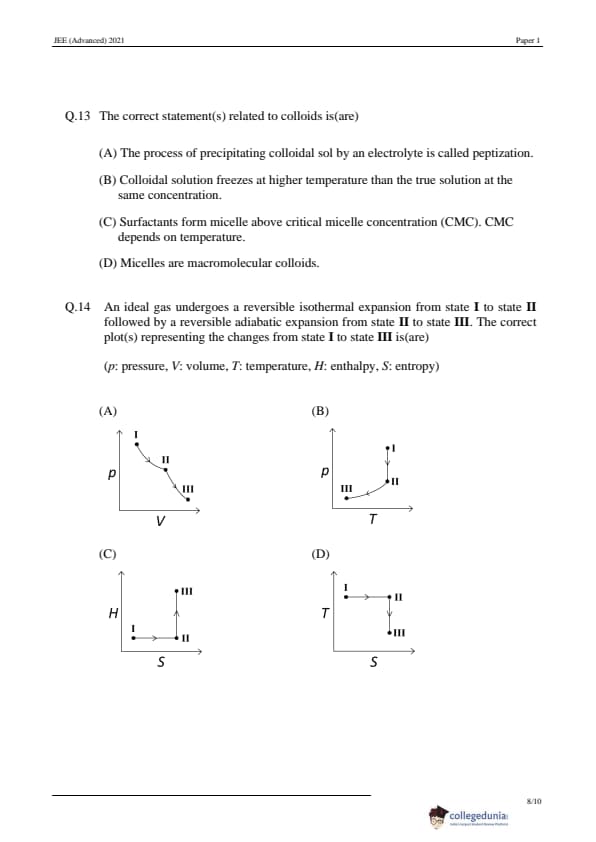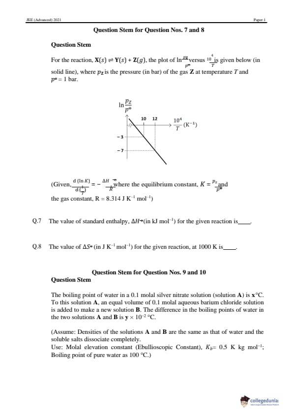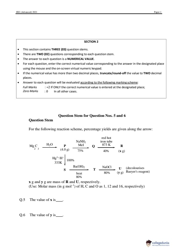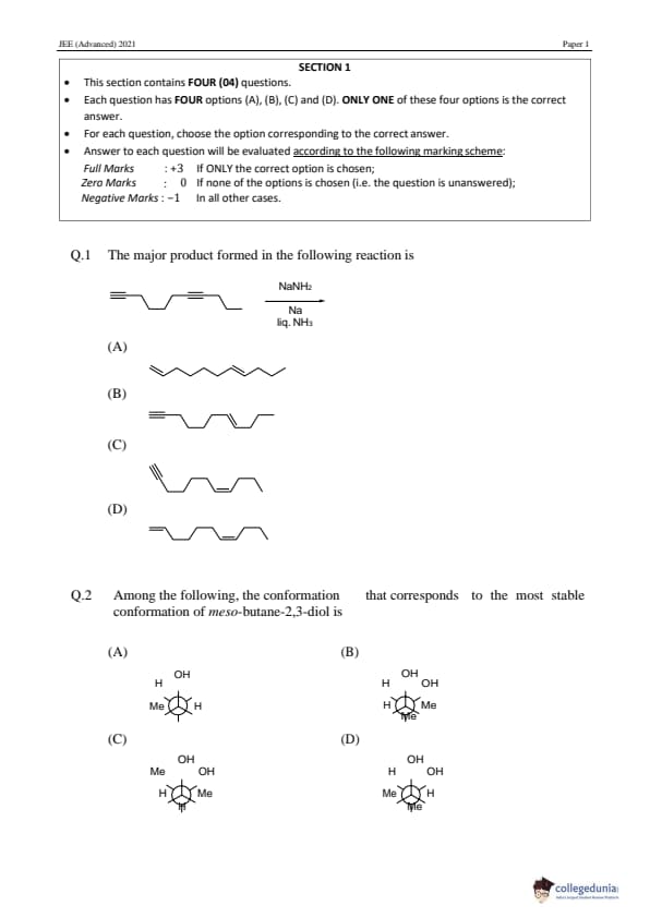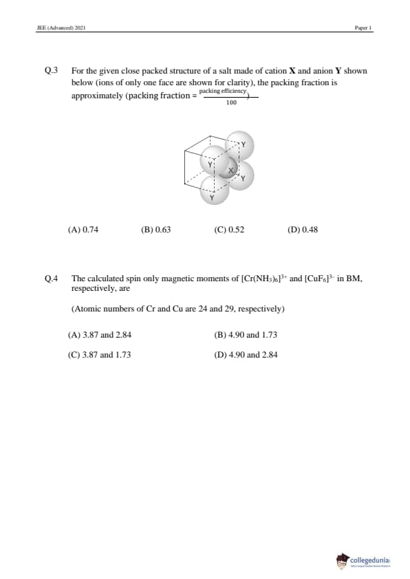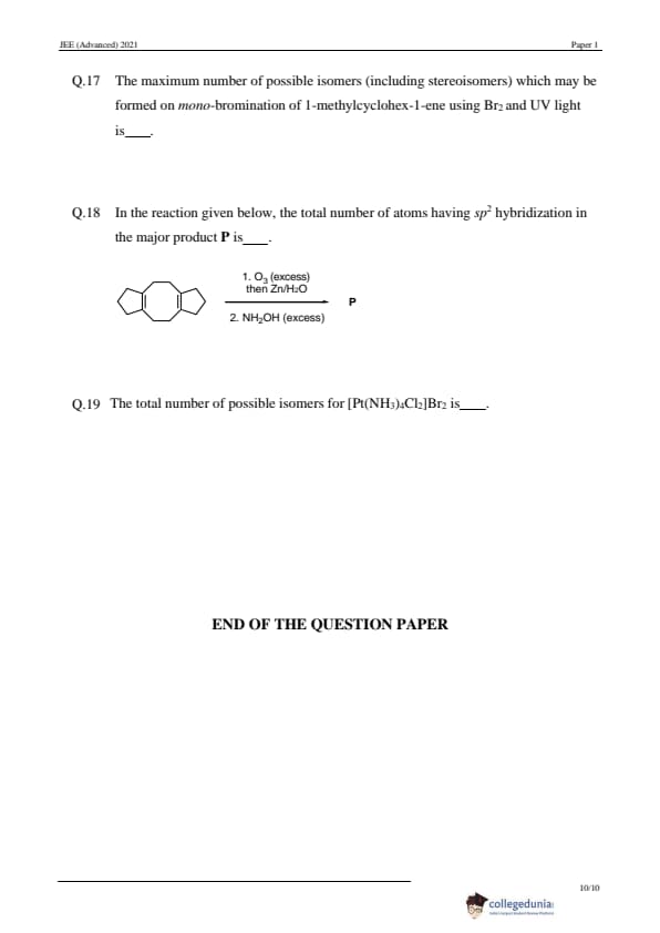 JEE Advanced 2021 Paper 1 Chemistry Question Paper with Answer Key PDF in English