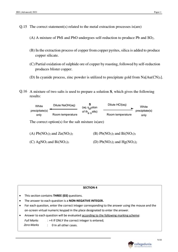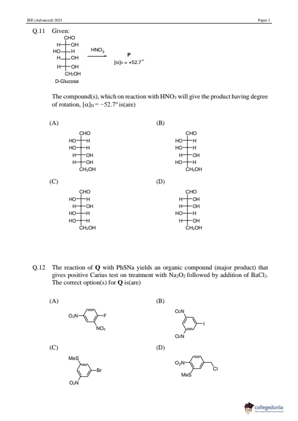 | JEE Advanced 2021 Paper 1 Chemistry Question Paper | JEE Advanced 2021 Paper 1 Chemistry Answer Key |