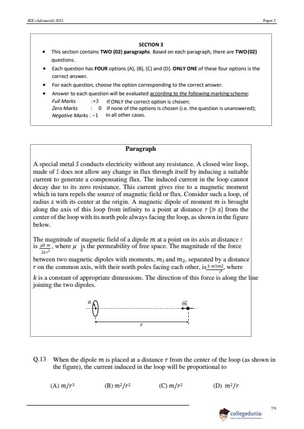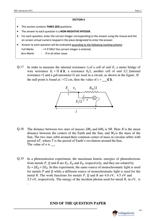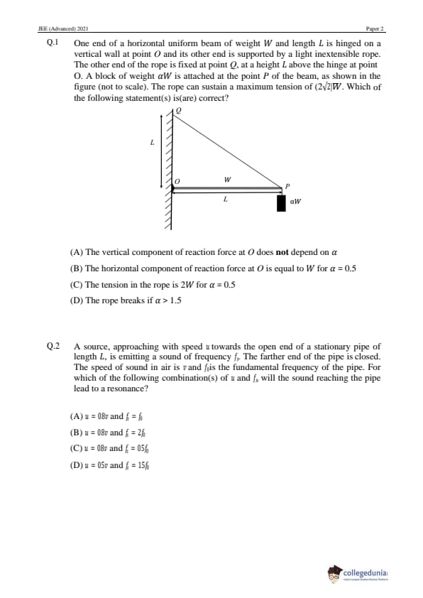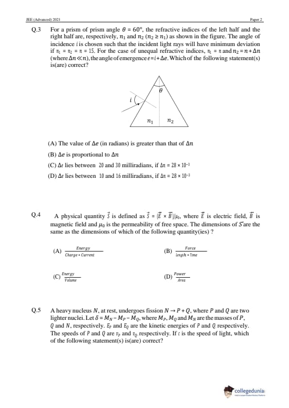 JEE Advanced 2021 Paper 2 Physics Question Paper with Answer Key PDF in English