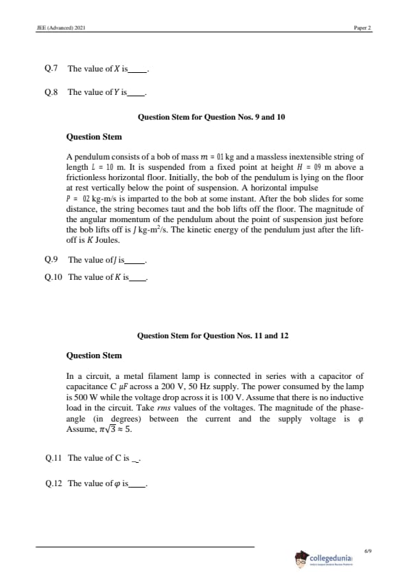 | JEE Advanced 2021 Paper 2 Physics Question Paper | JEE Advanced 2021 Paper 2 Physics Answer Key |