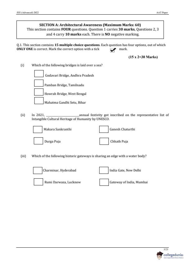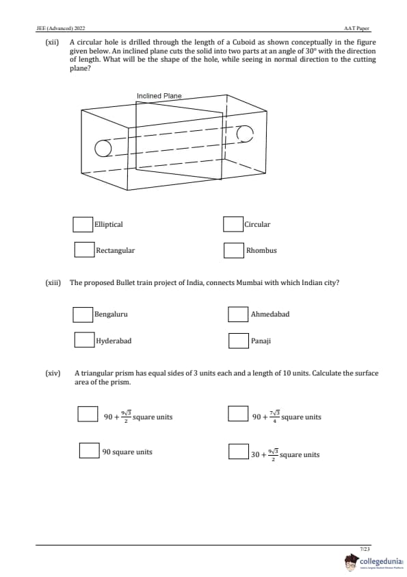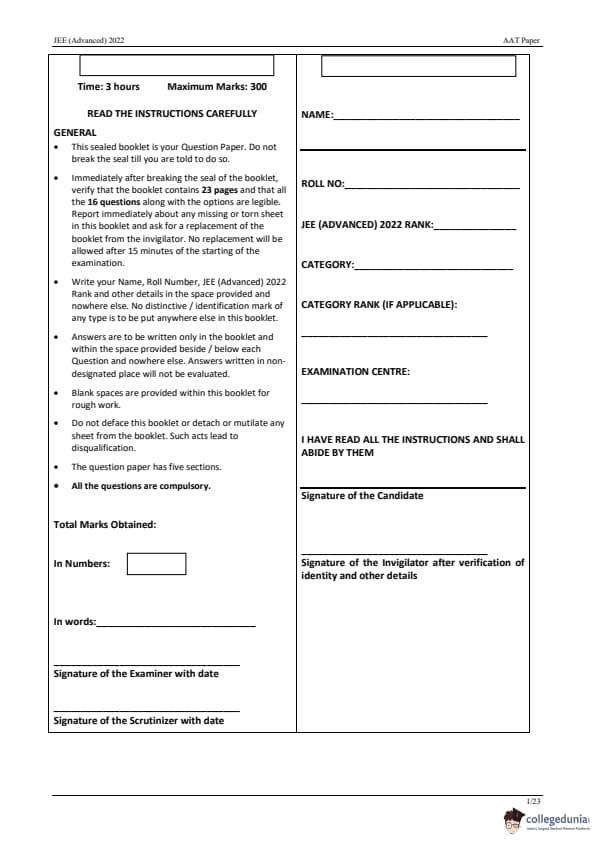 JEE Advanced 2022 AAT Question Paper with Answer Key PDF