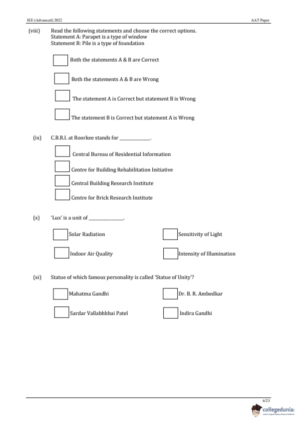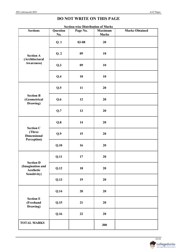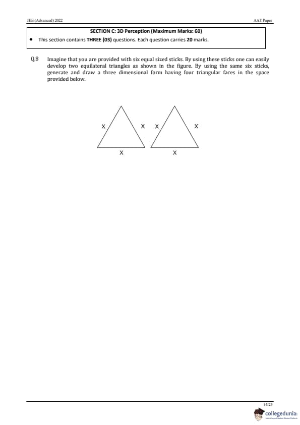 | JEE Advanced 2022 AAT Question Paper | JEE Advanced 2022 AAT Answer Key |