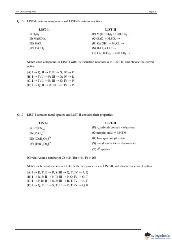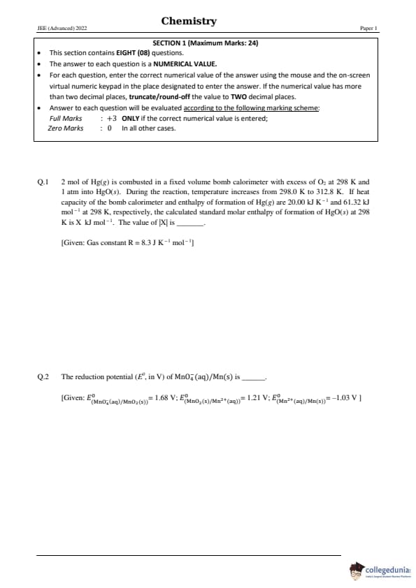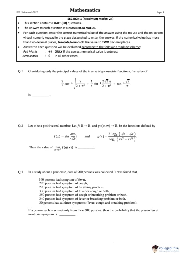 Candidates can check JEE Advanced 2022 Question Paper 1 from the below table:
