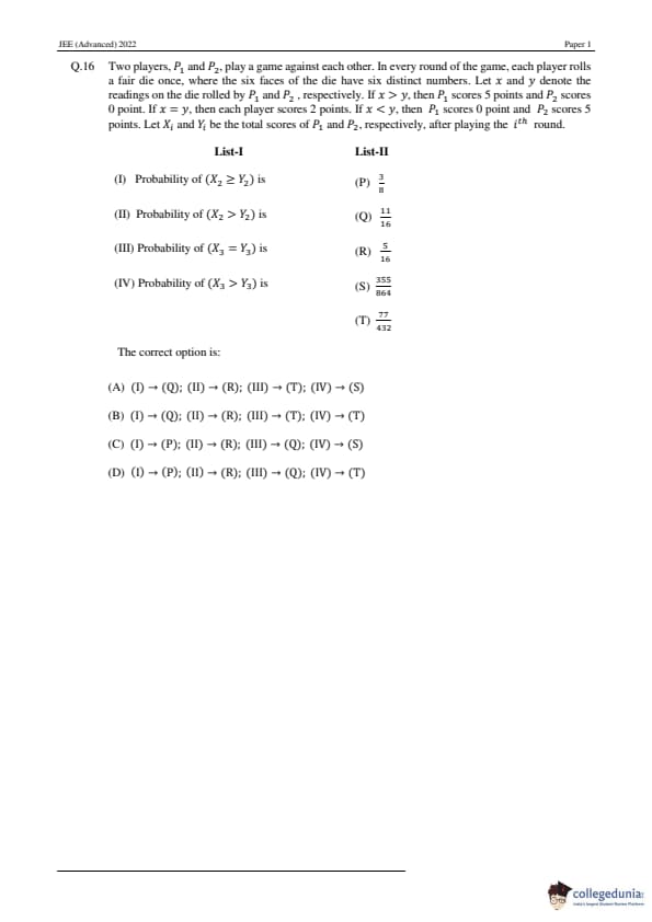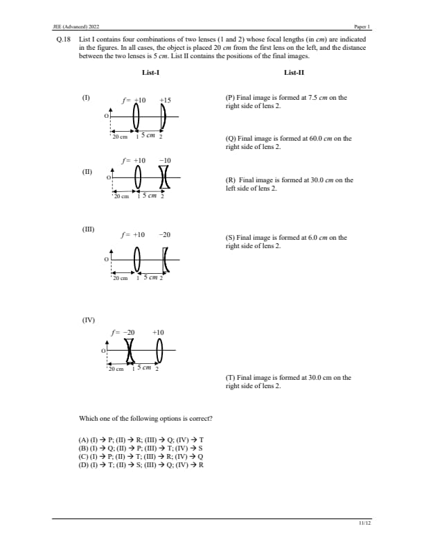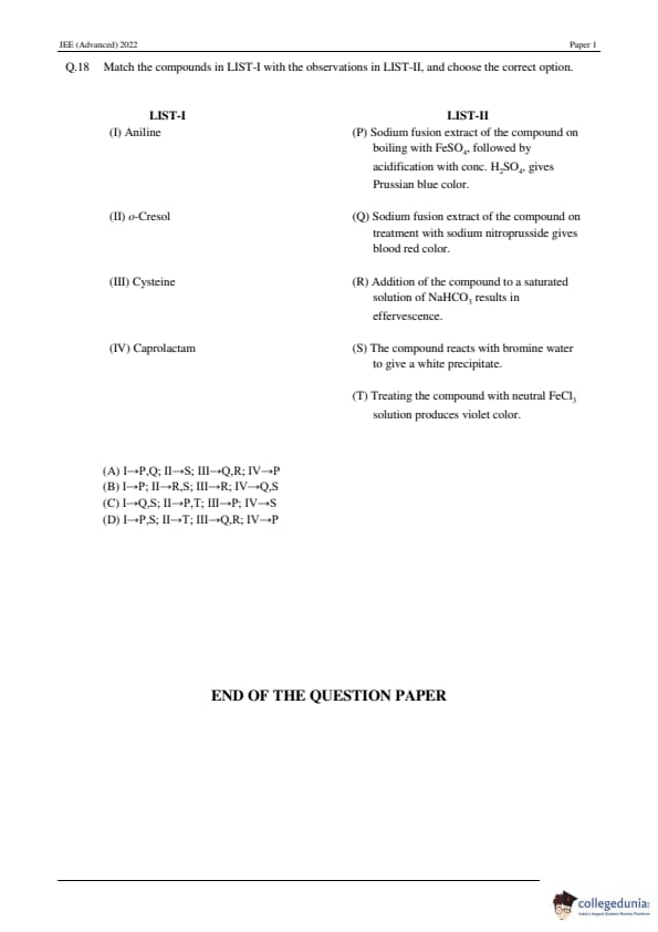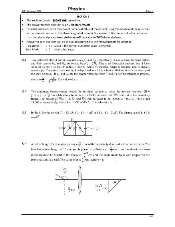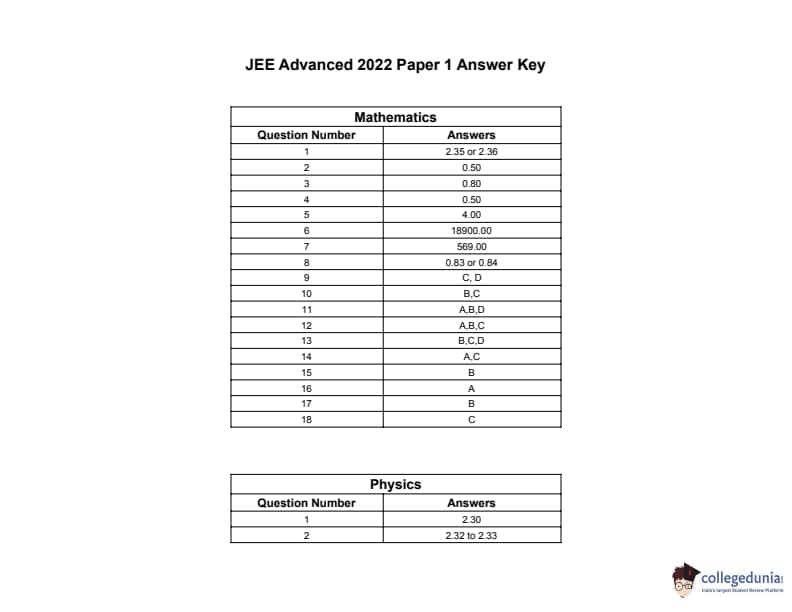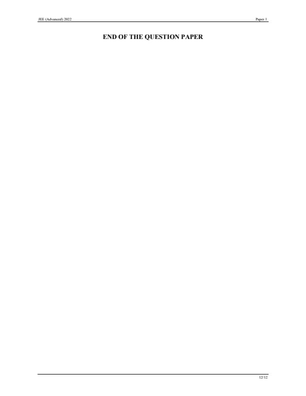 | JEE Advanced 2022 Paper 1 Question Paper | JEE Advanced 2022 Paper 1 Answer Key |