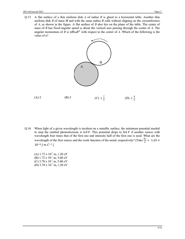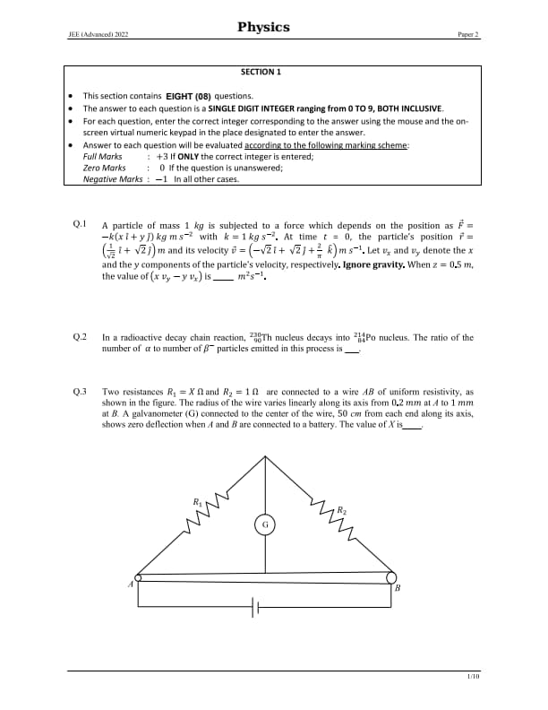 JEE Advanced 2022 Question Paper 2