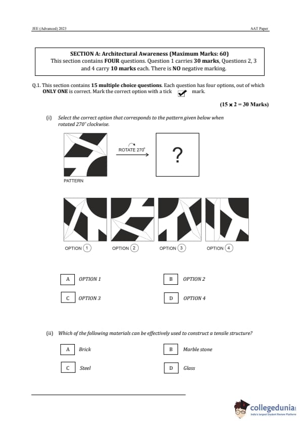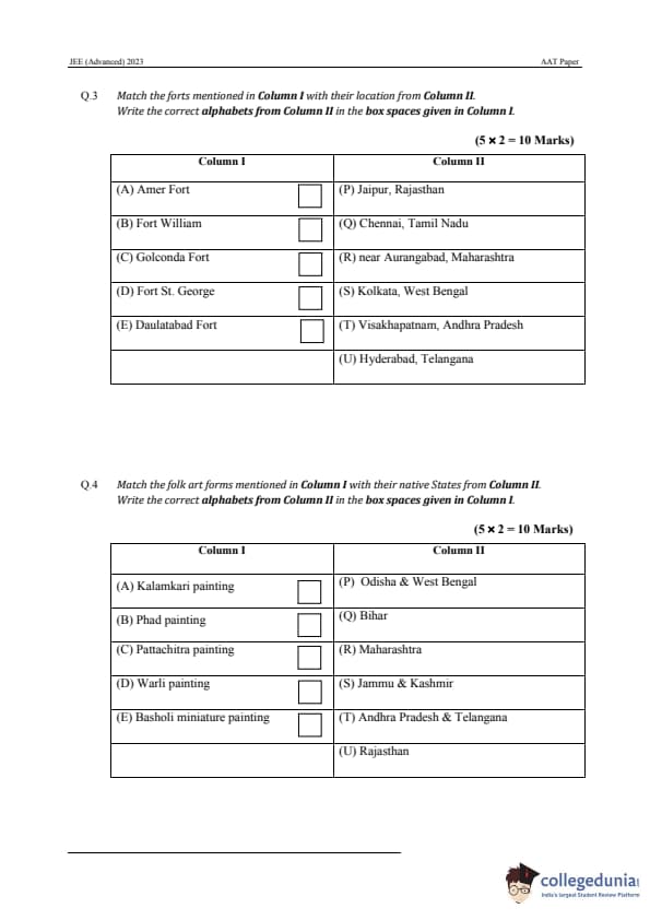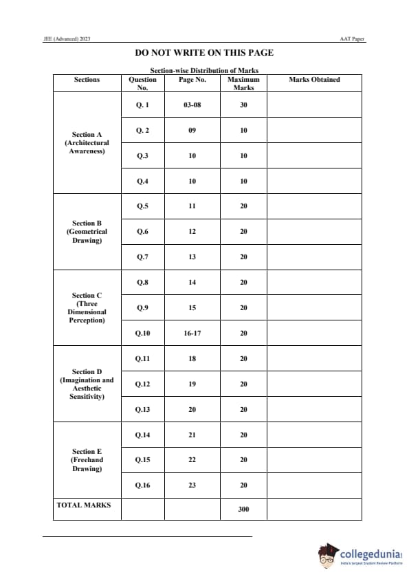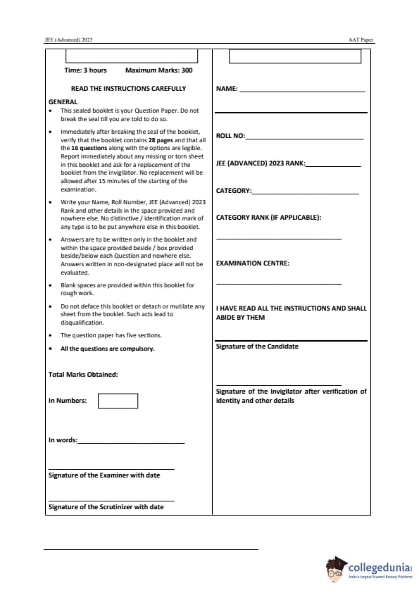 | JEE Advanced 2023 AAT Question Paper with Answer Key | Check Solution |