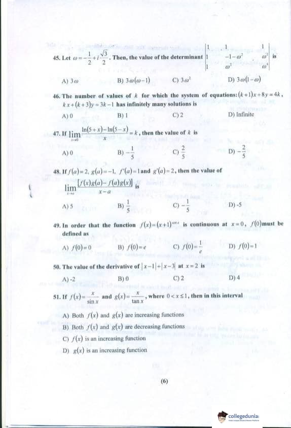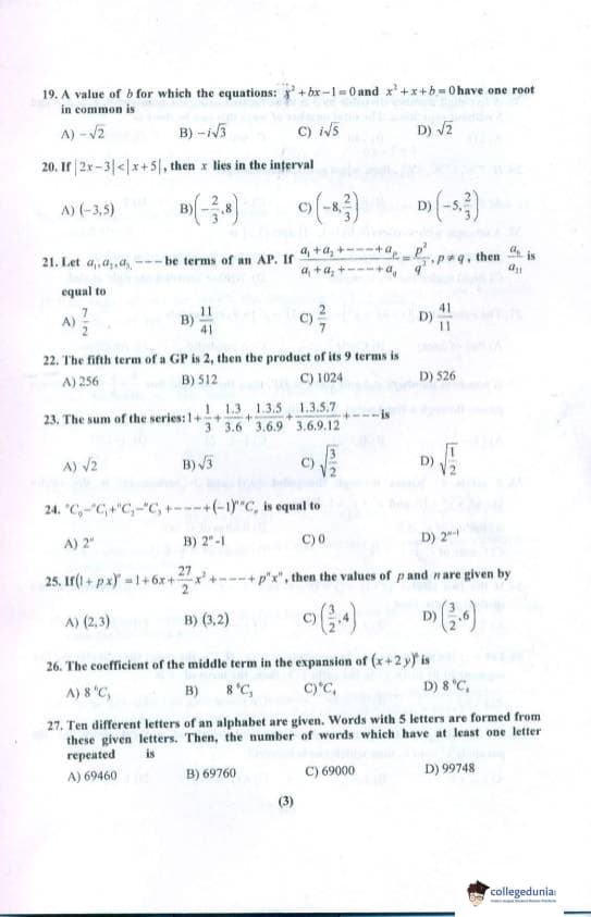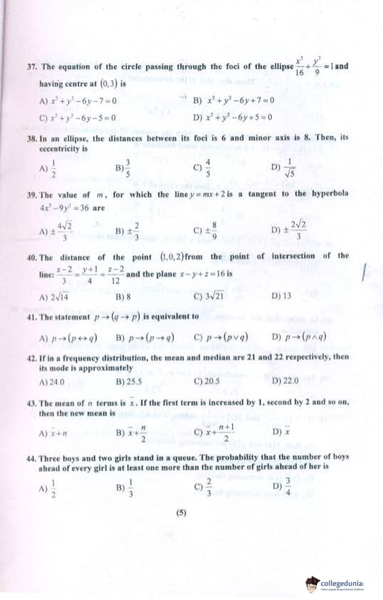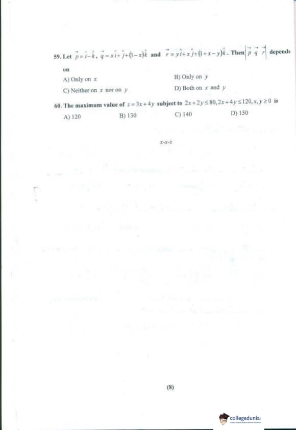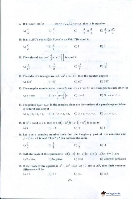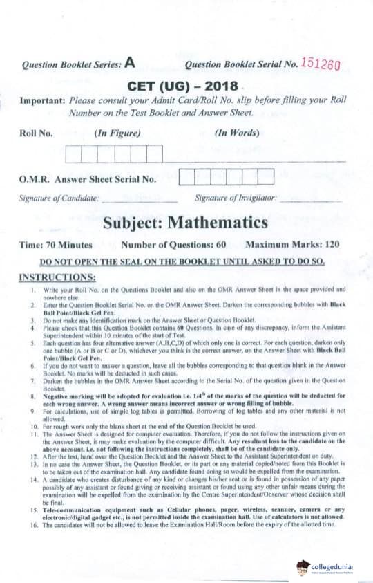PU CET 2018 Mathematics Question paper with answer key pdf conducted on April 29, 2018 is available for download. The exam was successfully organized by Panjab University, Chandigarh. The question paper comprised a total of 60 questions.