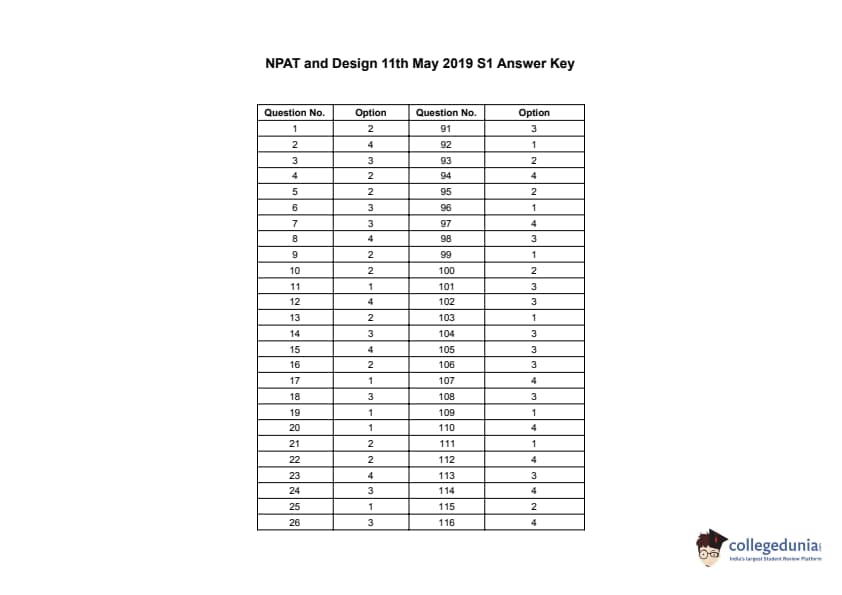 | NPAT 2019 NPAT Design Question Paper PDF | NPAT 2019 NPAT Design Answer Key PDF |