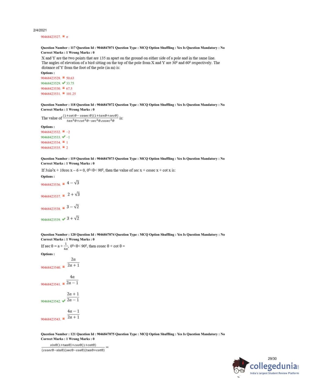 Thus, the correct answer is \( \frac{2a + 1}{2a - 1} \). Quick Tip: For expressions involving trigonometric identities, try to simplify using known identities, such as \( \sec^2 \theta - \tan^2 \theta = 1 \), and solve for the required terms.